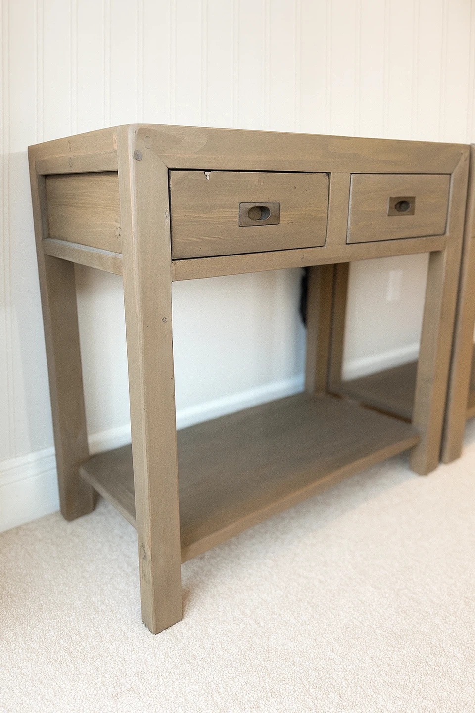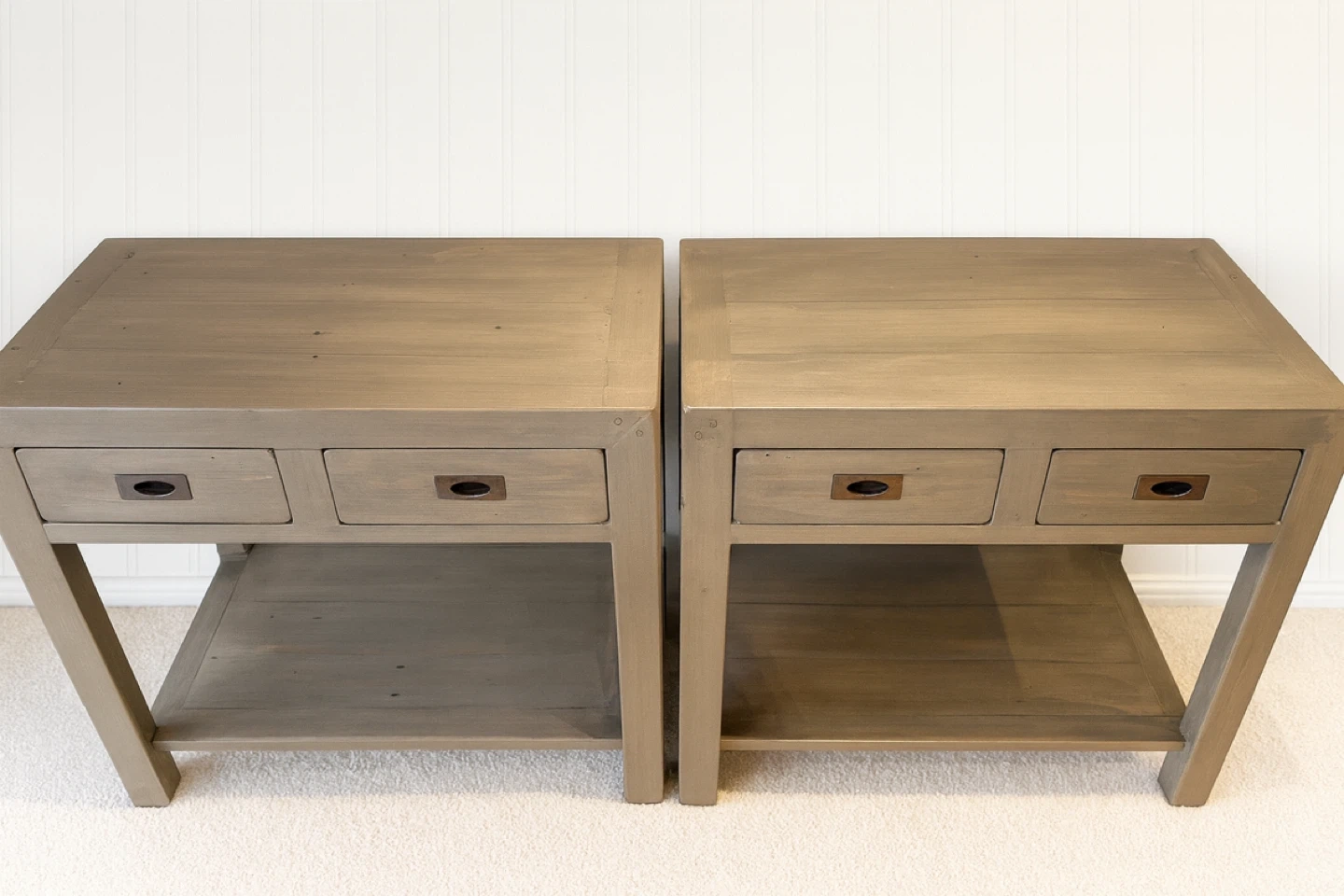 Beautiful solid-wood nightstands professionally refinished in a warm neutral tone. These are high-quality, sturdy pieces with clean modern lines — perfect for bedrooms styled in modern farmhouse, organic modern, or transitional decor.