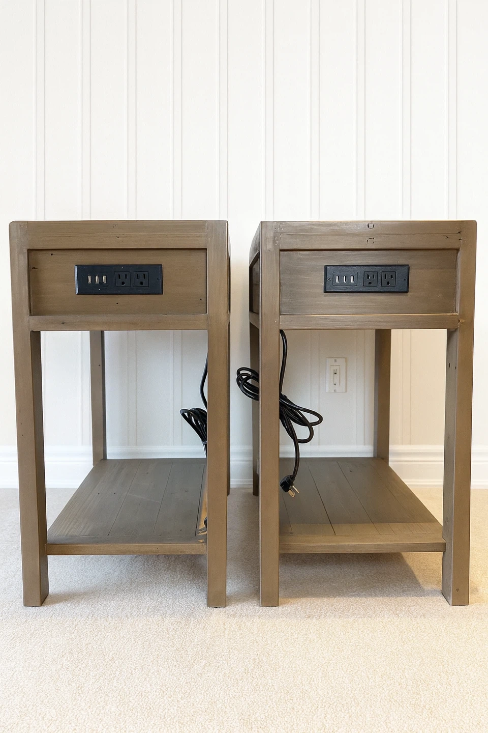 Set of 2 Solid Wood Nightstands | Built-In Outlets + USB