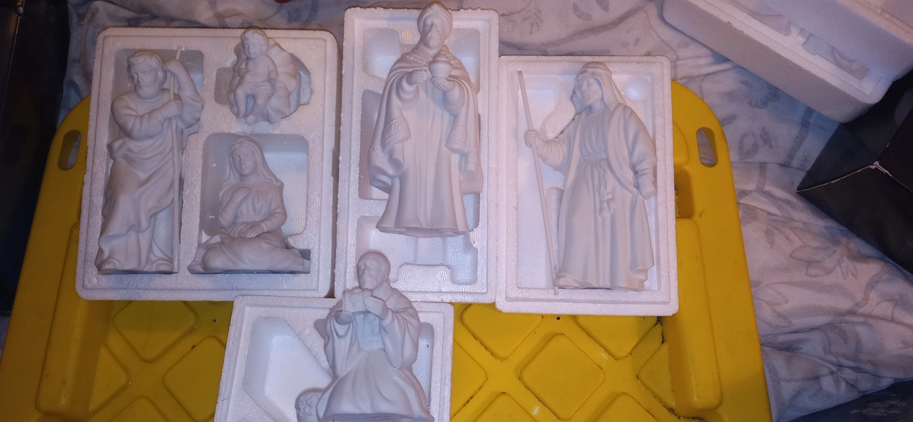 Selling a vintage Avon nativity set. The figurines come in their original packaging. They are white and are made of porcelain. The set includes several figures, including Mary, Joseph, baby Jesus, the Sheppard and wise man. Each box normally sells for $20 to $30. I'm selling all 4 boxes for $40. Like new!