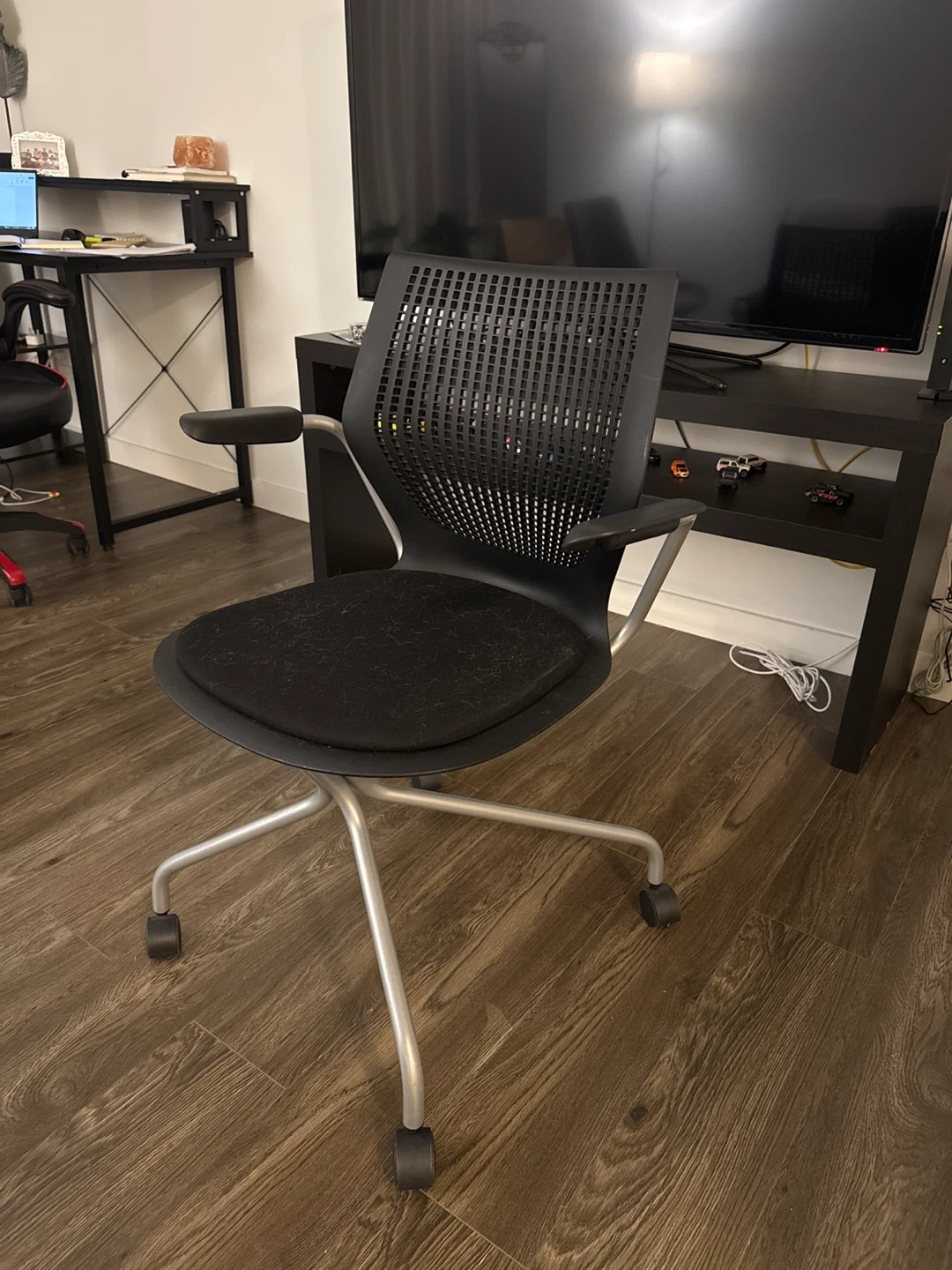 Selling a Steelcase Think ergonomic office chair in black. It's in good condition and provides great support for long hours at your desk. Perfect for your home office!