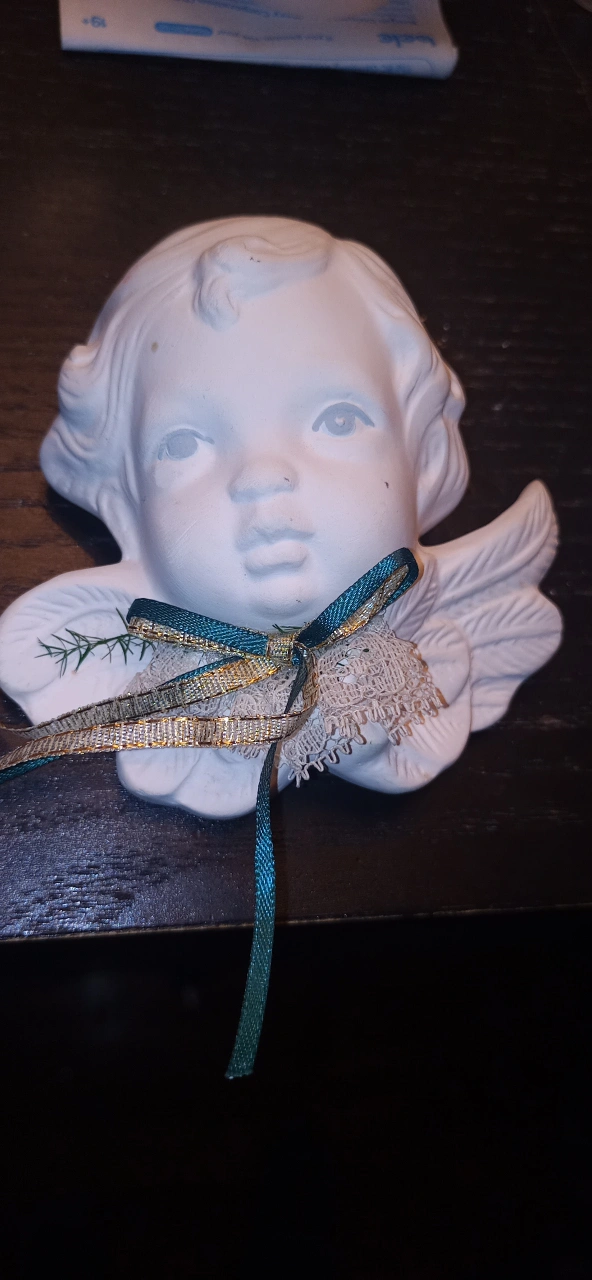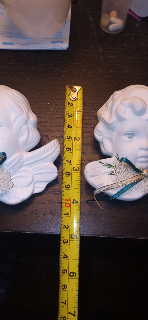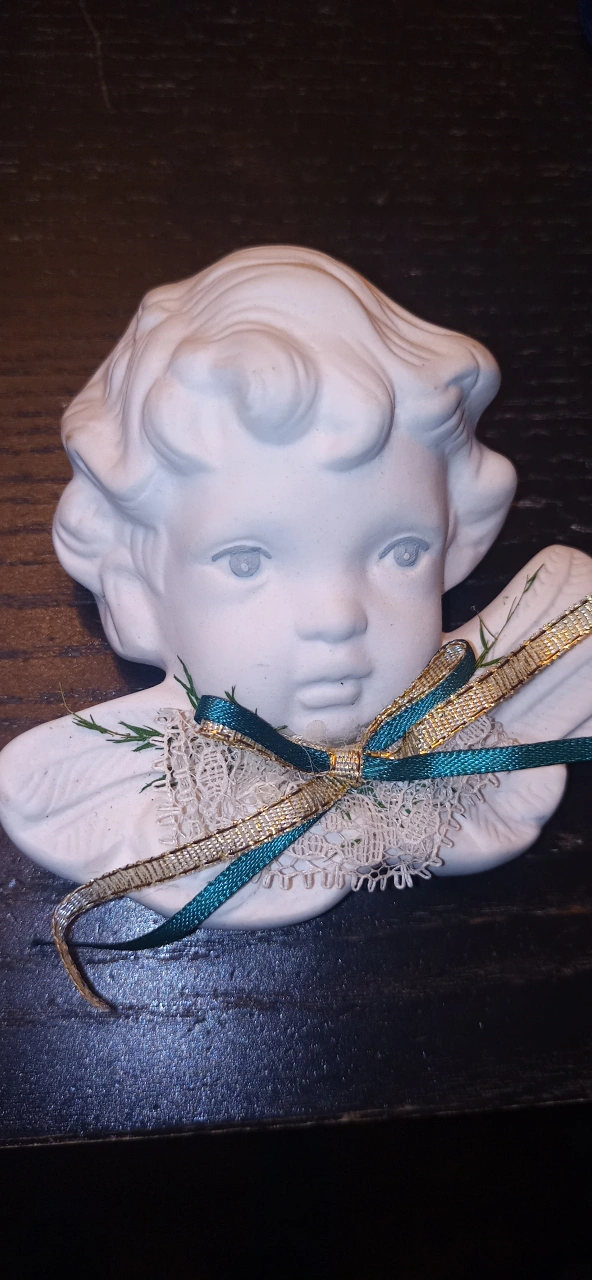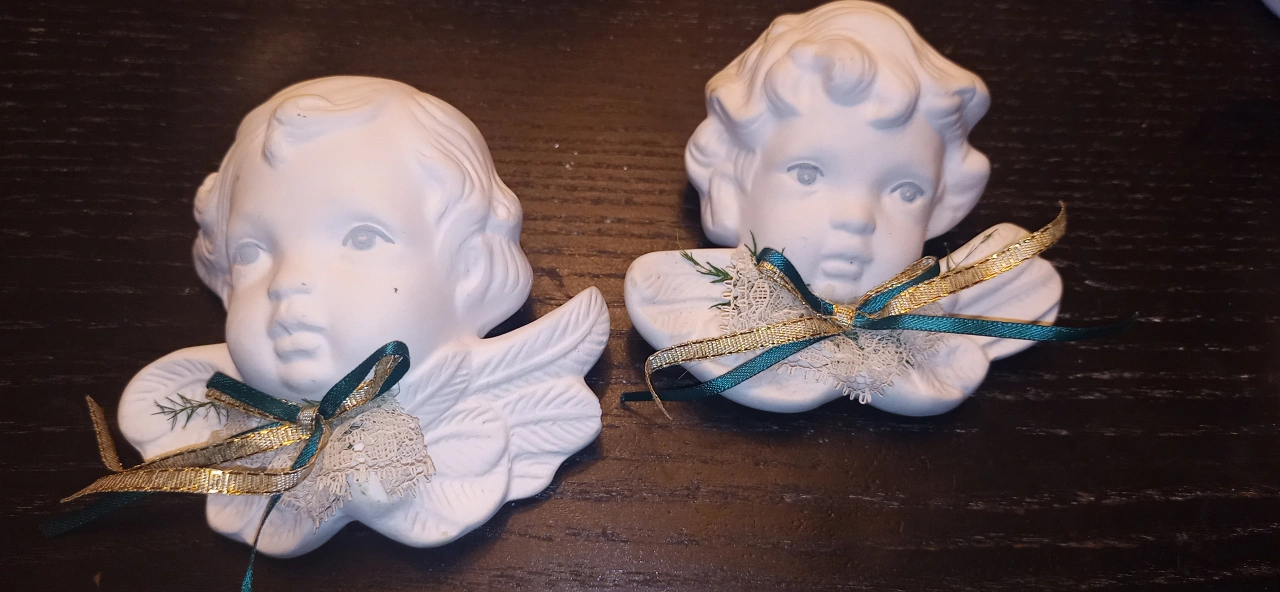 Here are some cute vintage angel head ornaments by Wells Arts! They're about 4 inches in size and made of porcelain.Would look great on a Christmas tree or anywhere else you want to add a touch of whimsy. Like new.