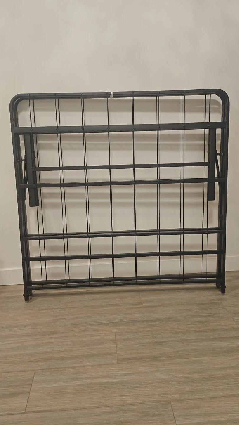 Selling a folding metal bed frame. It's in good condition and perfect for saving space when not in use. Easy to fold and store!