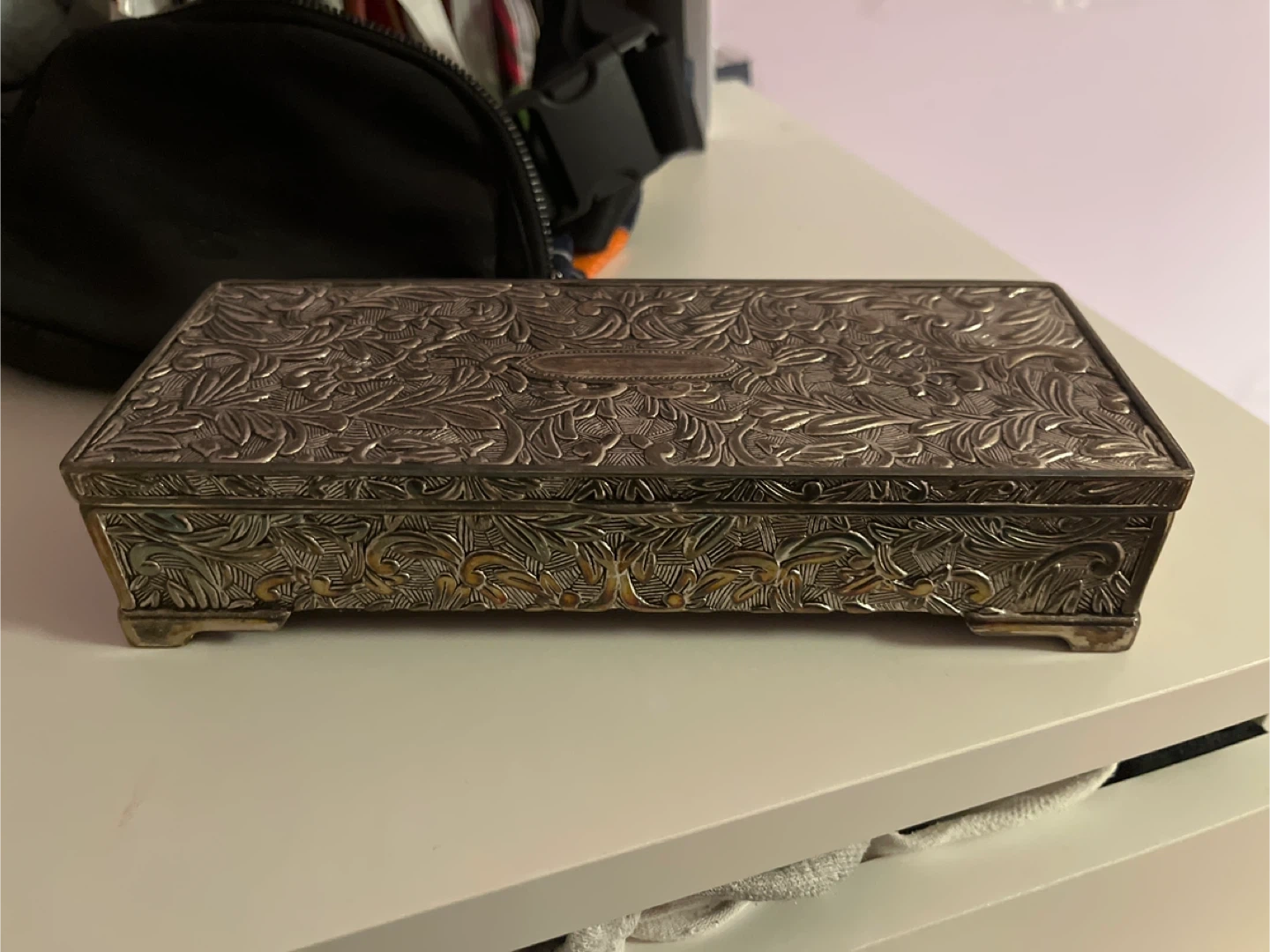Selling a vintage jewelry box with a beautiful floral design! It has a mirror inside and several compartments for organizing your jewelry. It's in great condition and perfect for storing your precious items