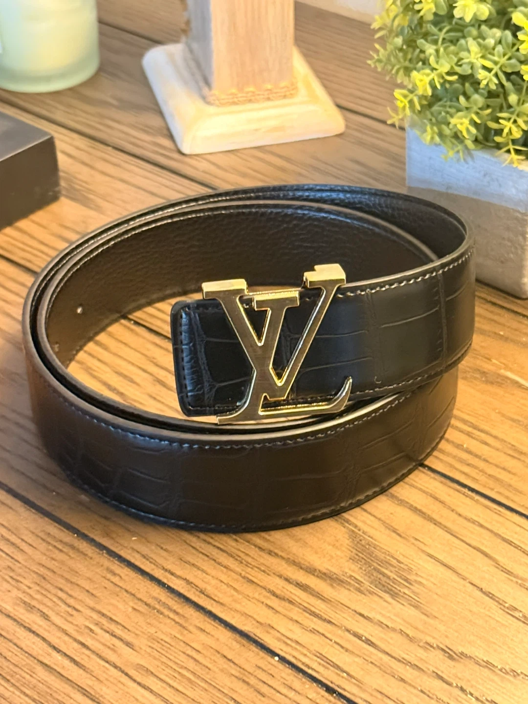 Selling a stylish Louis Vuitton belt in black leather! It features the classic LV logo buckle and comes with the original box. This belt is a great accessory to elevate any outfit!