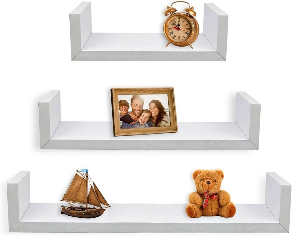 Greenco Set of 3 Floating “U” Shelves, Easy-to-Assemble Floating Wall Mount Shelves for Bedrooms and Living Rooms, White Finish
