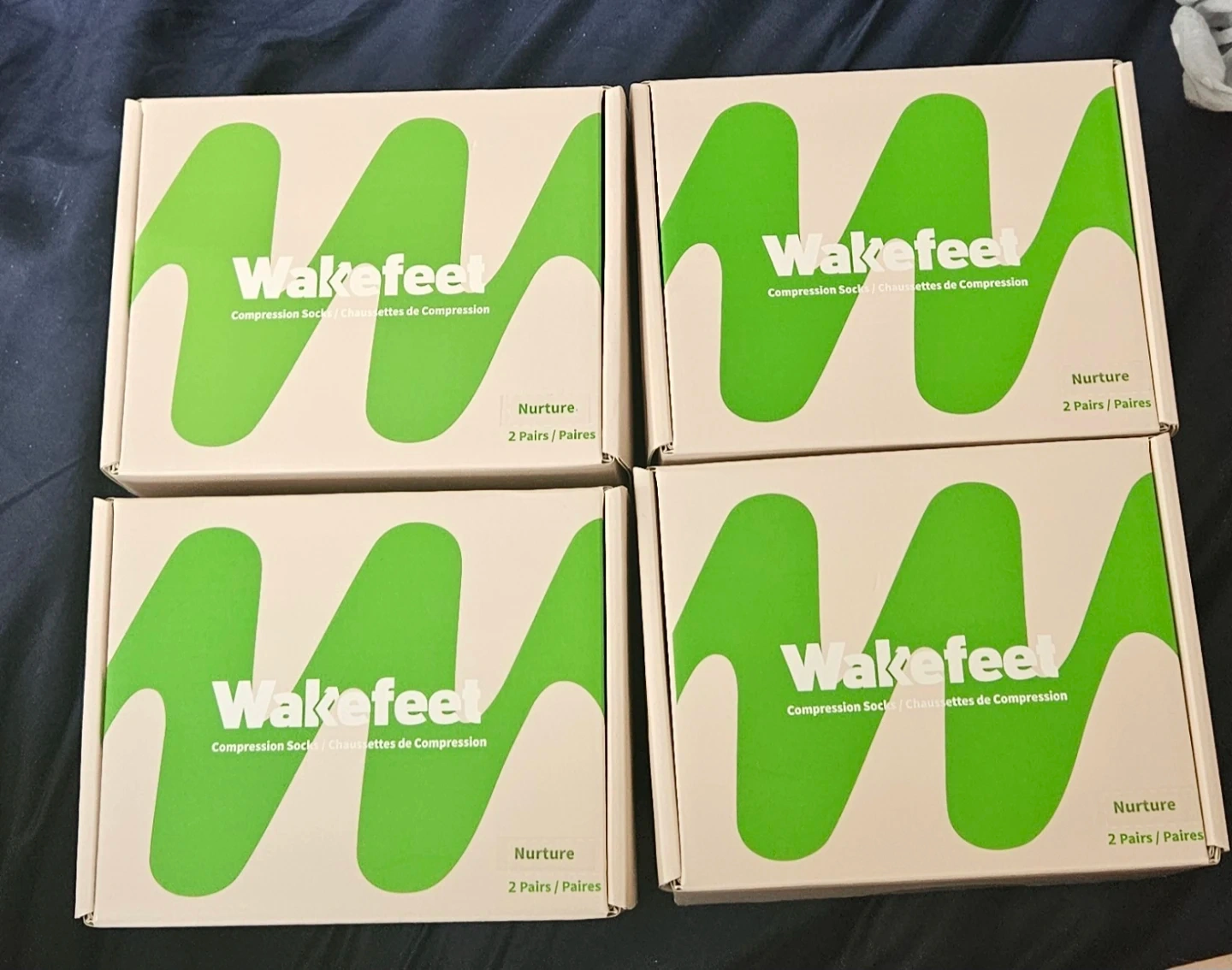 I'm selling Wakefeel compression socks. Each box contains 2 pairs of socks in 1 box and I have four boxes total. Size: Large/XL & XXL They are designed to provide support and comfort for your legs and feet. The socks come in their original box. Perfect for everyday wear or travel and POTS.