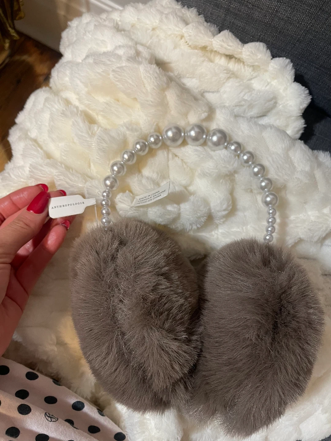 Anthropologie Faux Fur Earmuffs with Pearls - New with Tags!