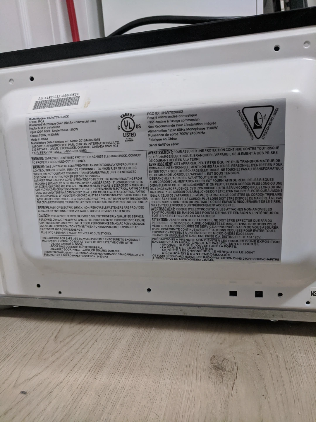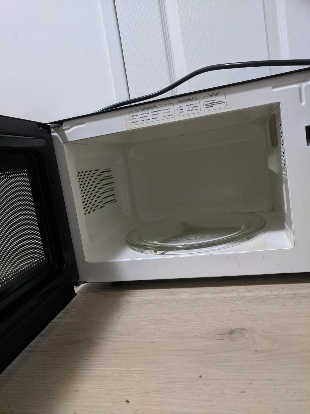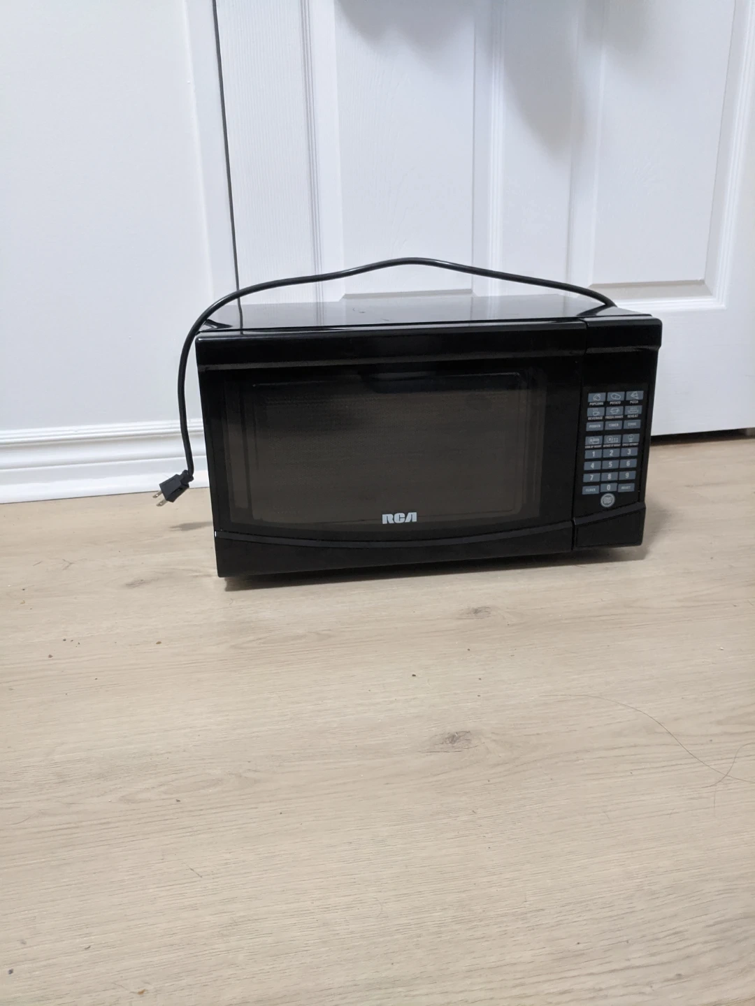 Selling a used RCA microwave in black. It's in good working condition and comes with the glass turntable inside. Perfect for small spaces or quick meals!