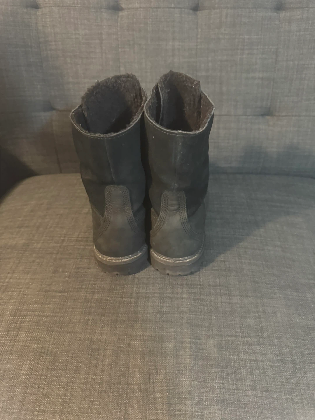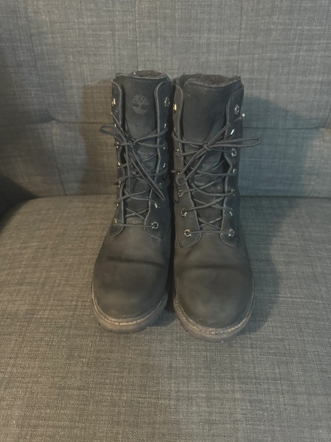 Selling a pair of black Timberland lace-up boots! They're in good condition and ready for the colder weather. Perfect for everyday wear!