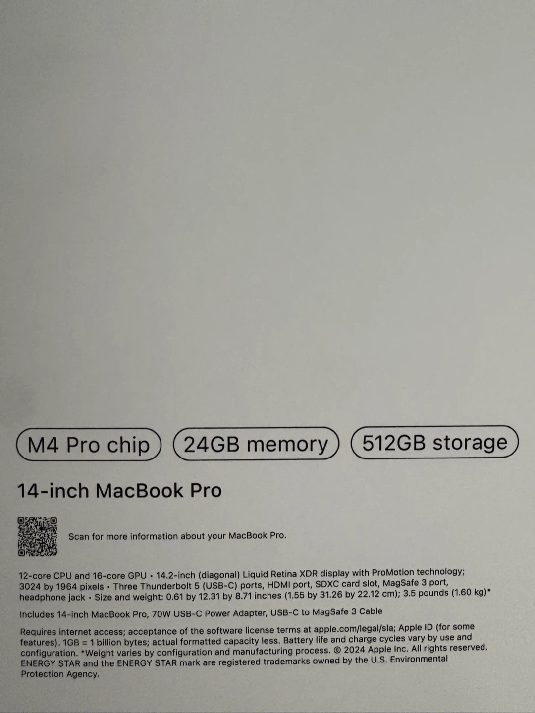 Selling a brand new 14-inch MacBook Pro with the M4 Pro chip, 24GB of memory, and 512GB of storage! Comes in original packaging as it’s never been opened. Open to trades for precious metals.