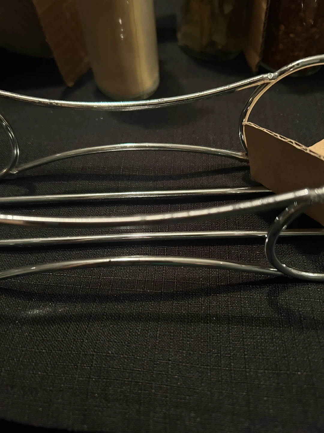 The metal holder has a little discolouring on it. Hard to see in picture. The 5 glass jars are in good condition. The rack is designed to keep your spices easily accessible and neatly displayed.