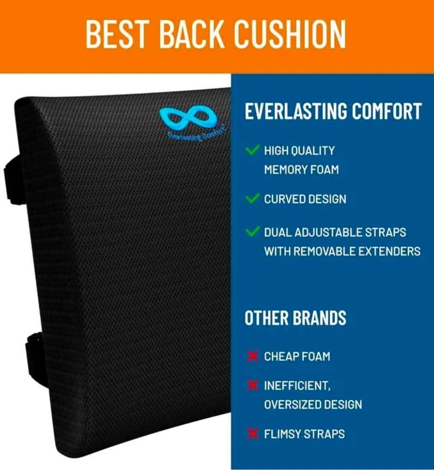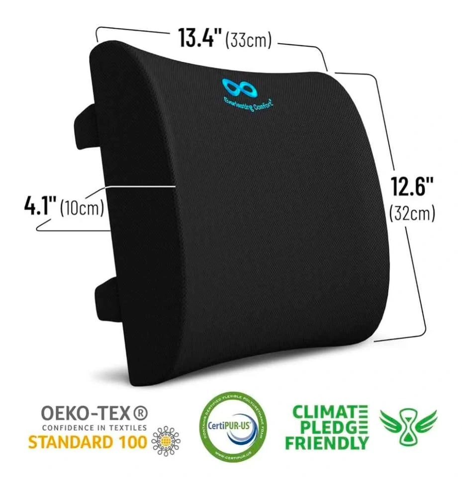 Everlasting Comfort Lumbar Support Pillow - Memory Foam Back Cushion for Office Chair, Car, Gaming, Recliner