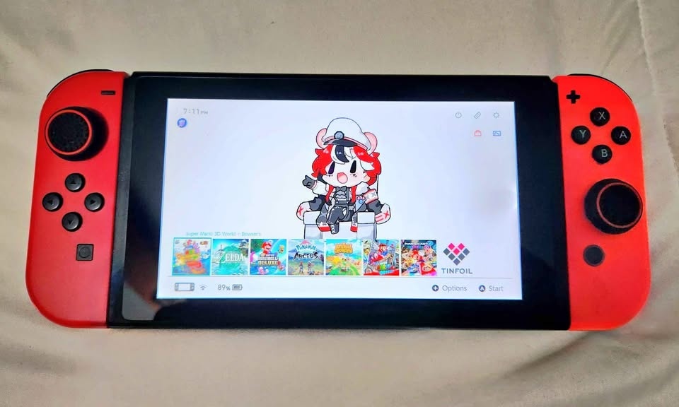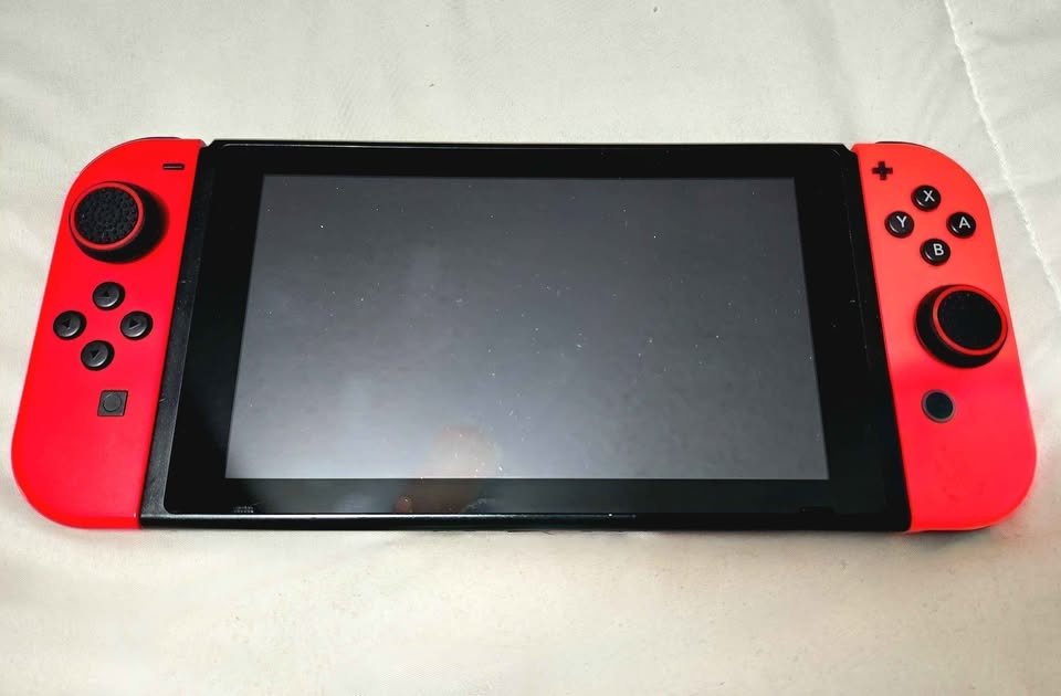 Good condition Nintendo Switch, modded and comes with the Games installed in the pics. And can download any game you want thru the tinfoil store on the switch. The only problem is the on the right the screen is slightly dented in, so a few color spots are shown when the screen is dark, but its a small problem and not noticeable most of the time like the pics. Comes with all accessories in the pics. Also have other gaming and stuff on my profile, thanks for checking!