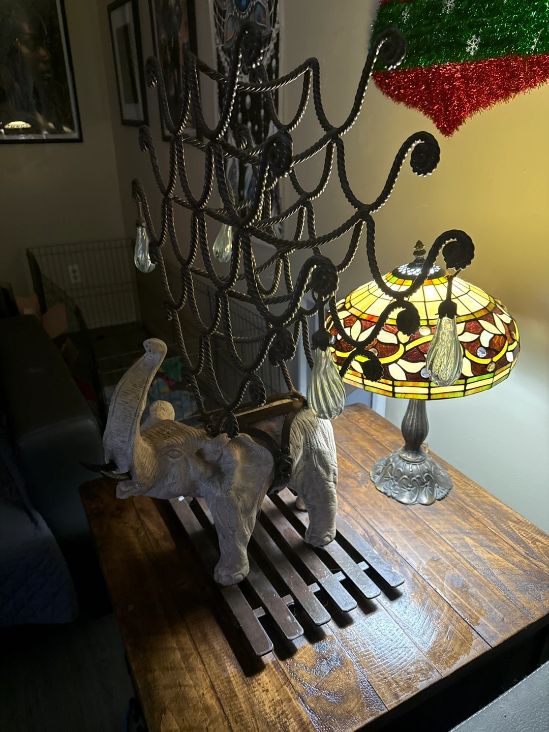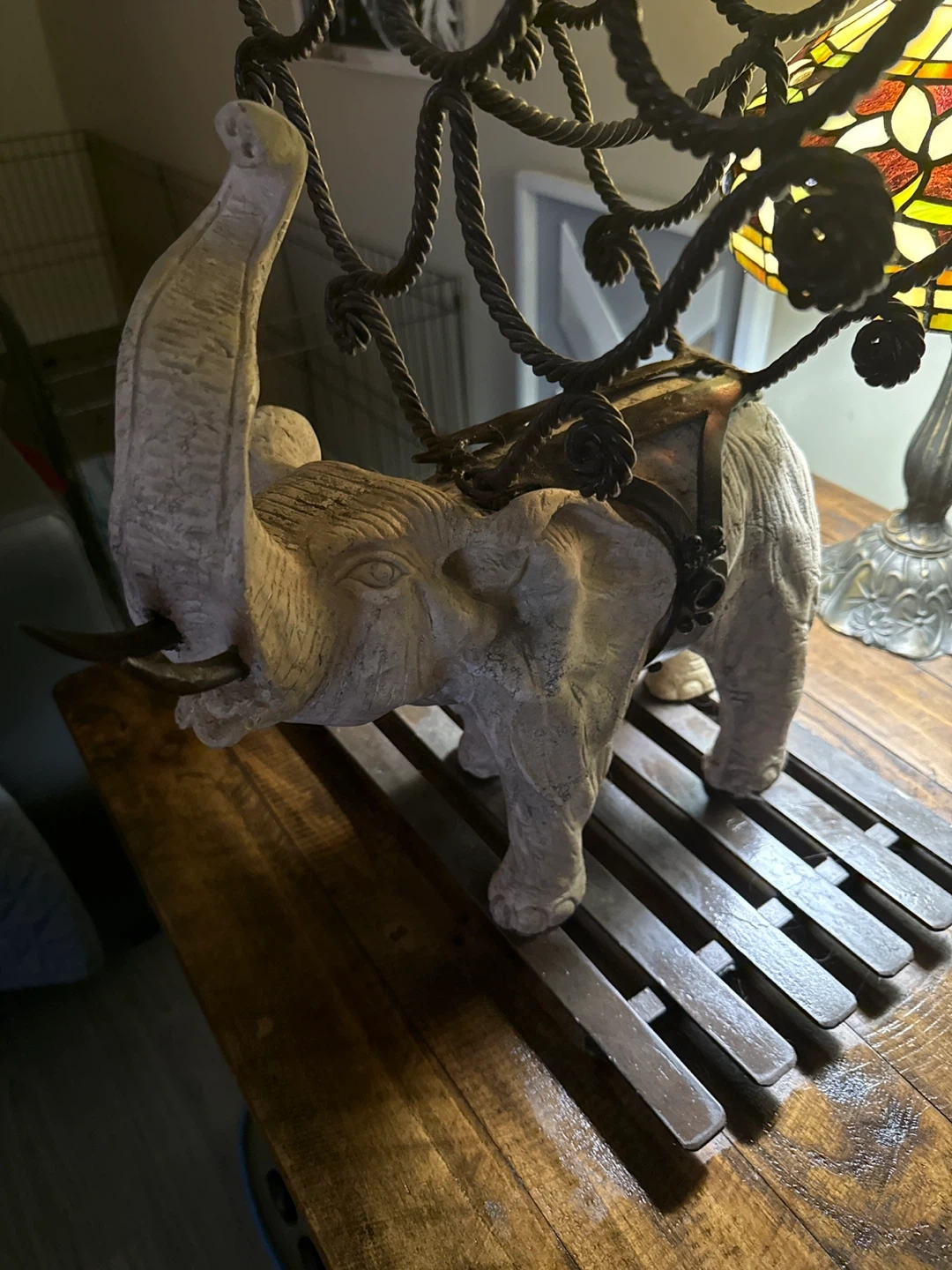 Here's a unique elephant statue that doubles as a wine rack! It's a great conversation piece and a fun way to display your favourite wines. It's in good condition and ready to add some character to your home decor