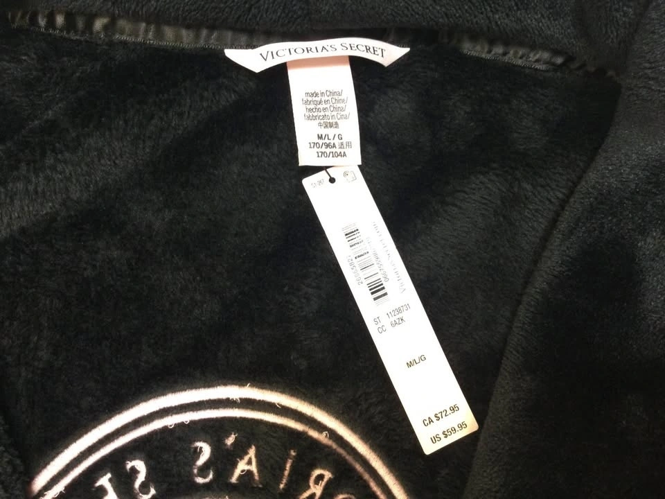 NEW * Victorias Secret Plush Robe Womens Small Black Lounge Cozy