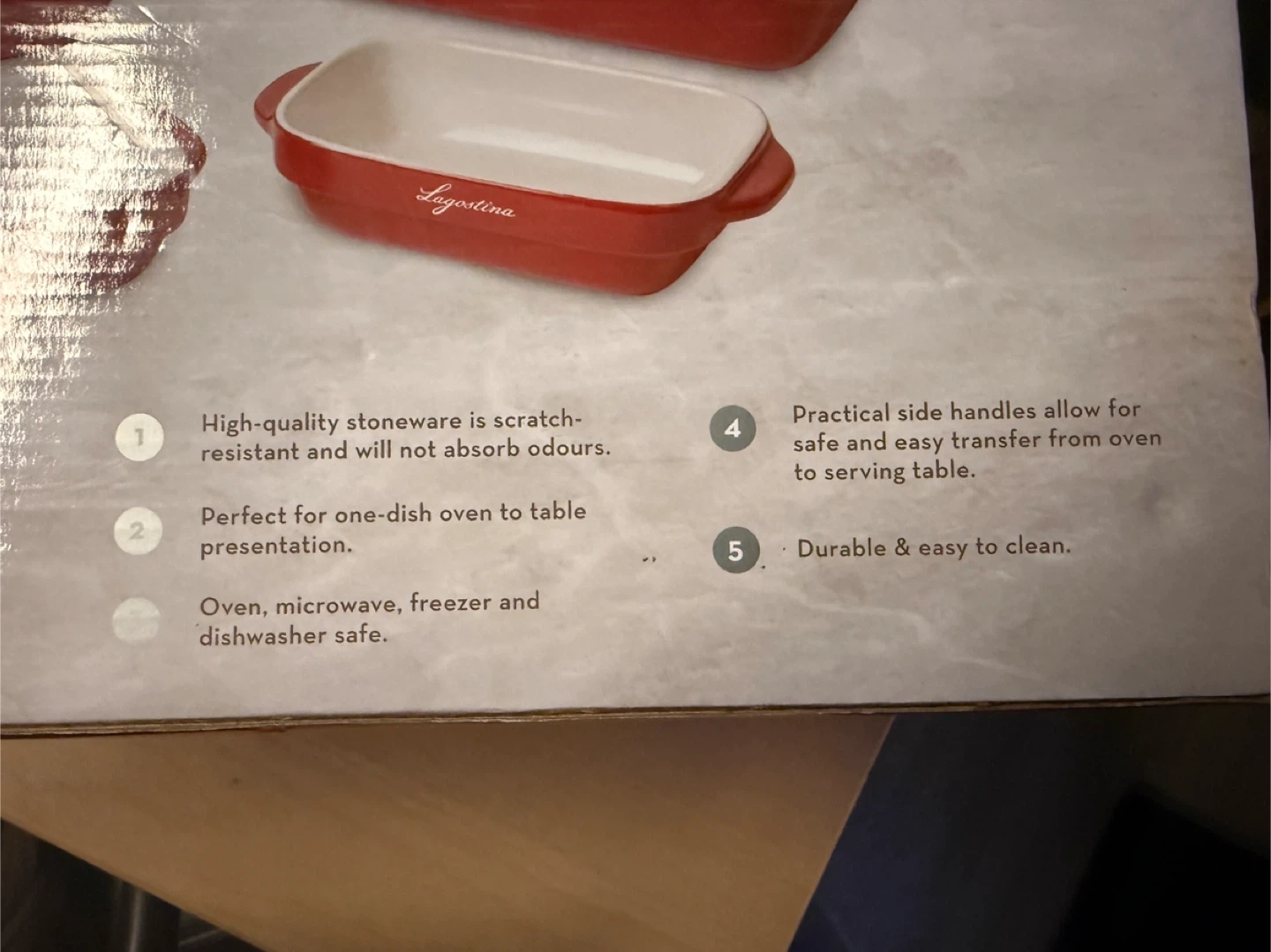 Selling a brand new Lagostina 4-piece stoneware baking set! It's oven safe to 500°F/260°C and not recommended for stovetop use.