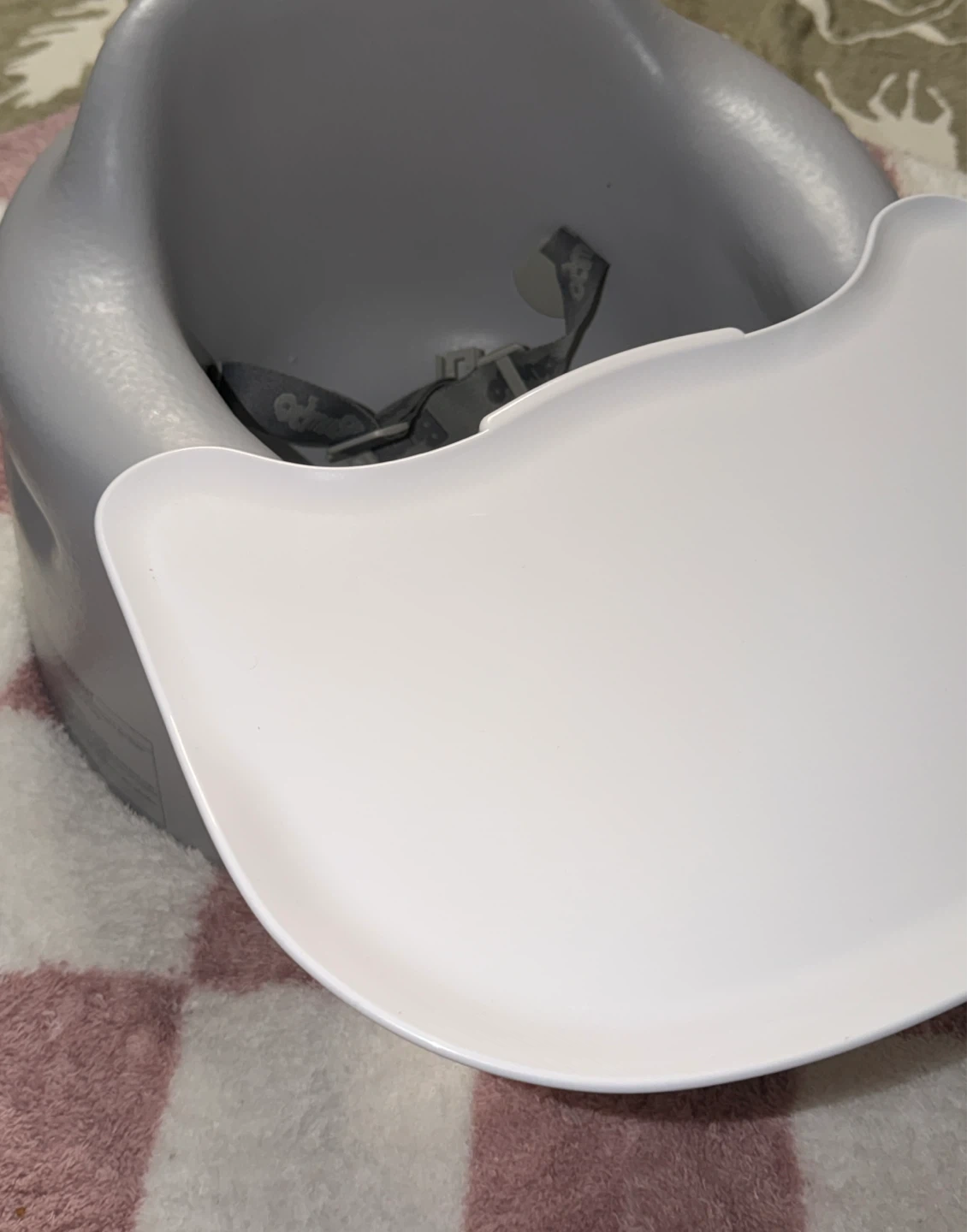Selling a gently used Bumbo floor seat in grey, complete with a tray! This seat is perfect for little ones who are learning to sit up. It provides a supportive and comfortable place for them to play and explore. The tray is great for snacks or toys. The manufacturing date is 2024 February 07.