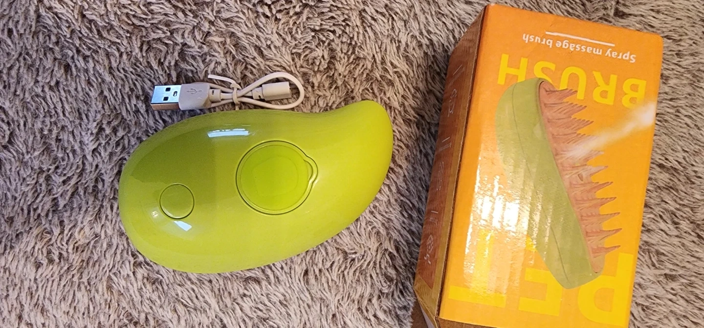 Selling a pet brush spray massage comb! It's green and comes with its original box. It is suitable for all pets. The package contains a spray massage comb and a charging line.