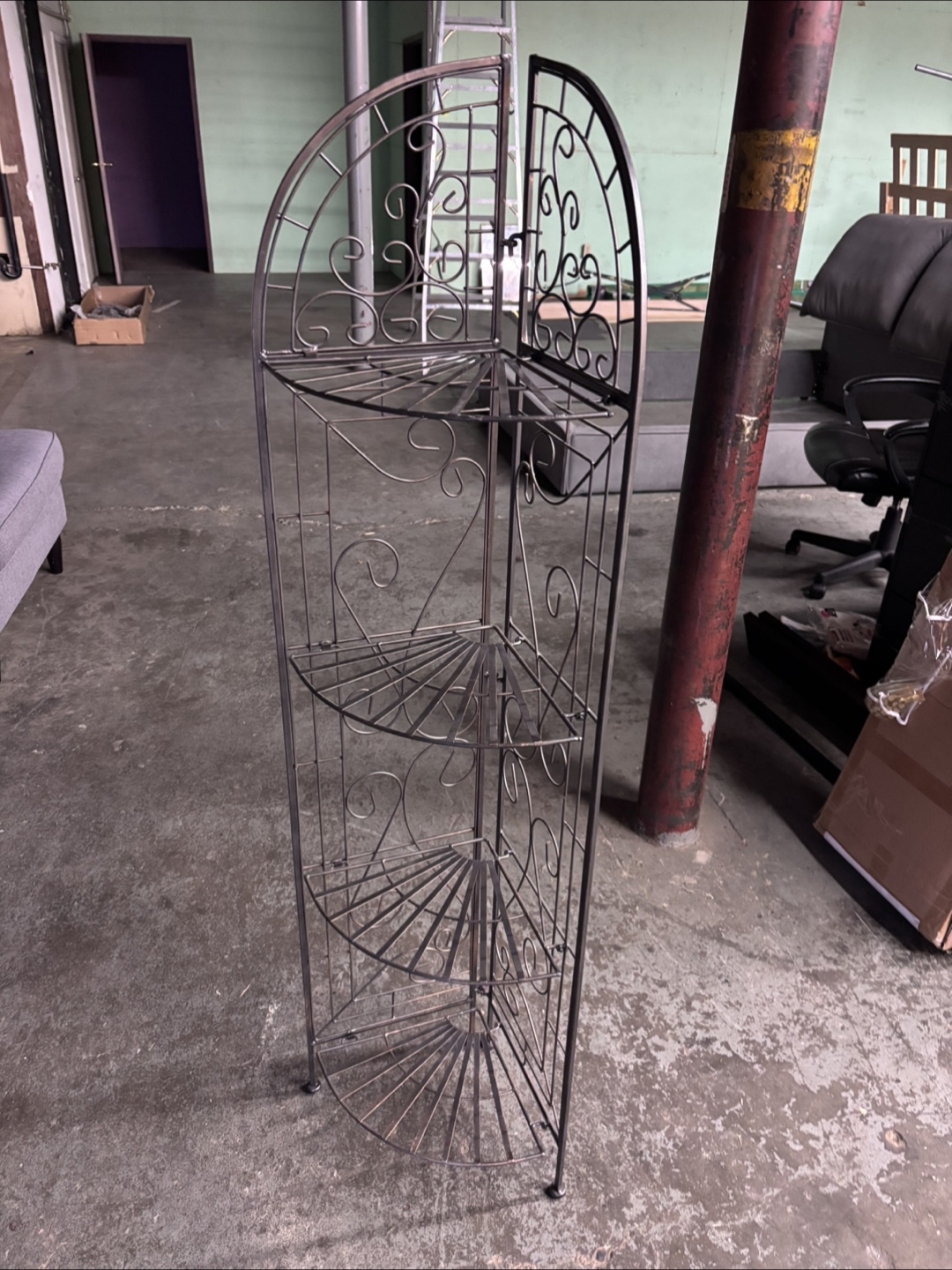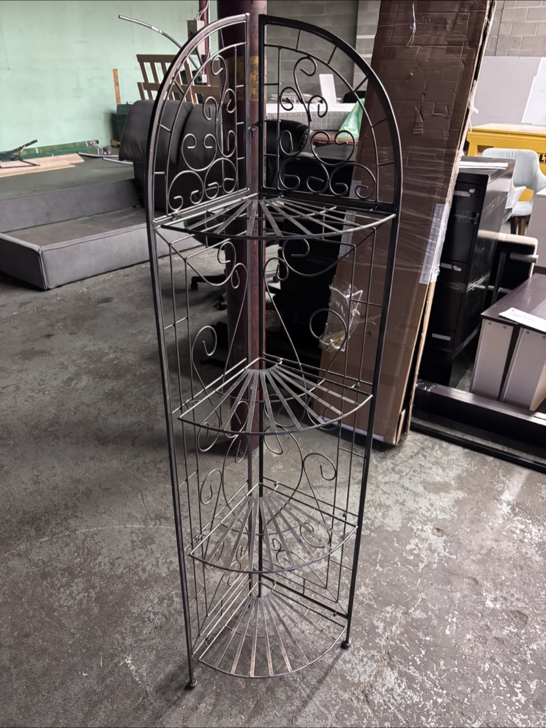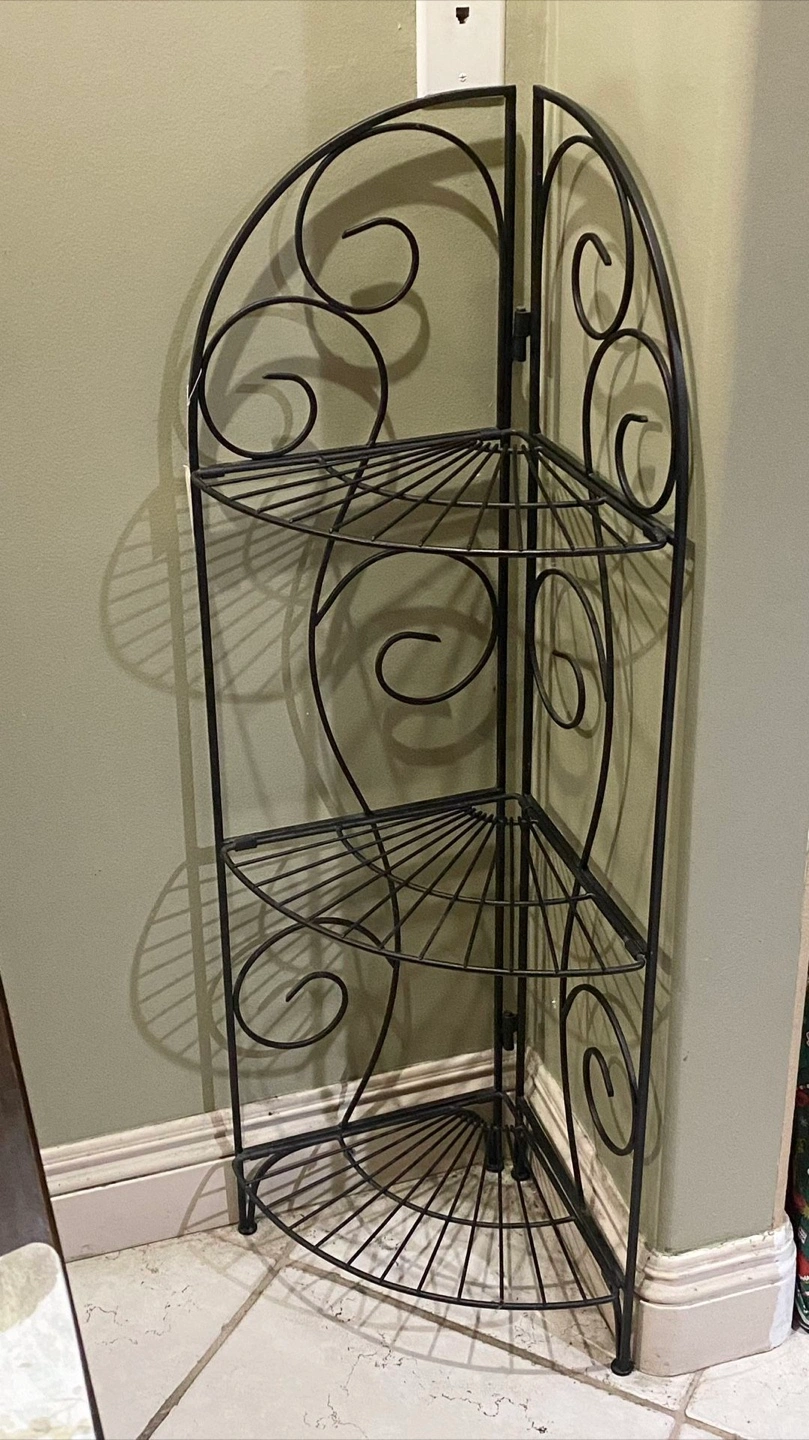 Selling a corner etagere, perfect for adding some storage and style to any room! It's made of metal and has a black finish. It's in good condition and ready to use