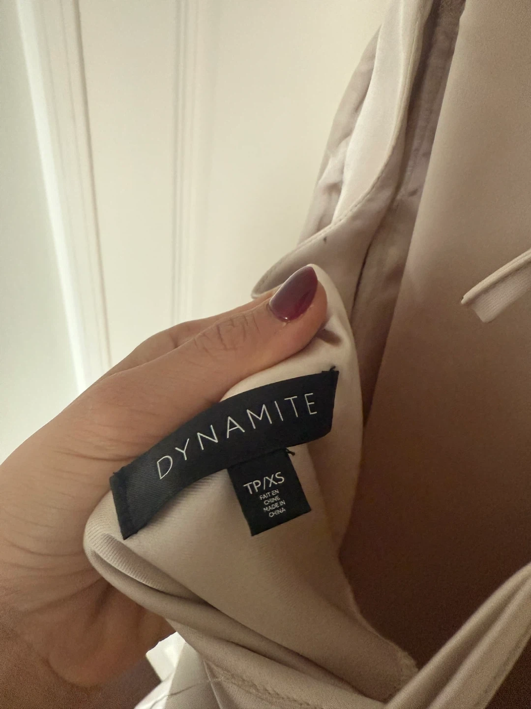 Buy & SellDynamite Dress - Size TP/XSDynamite Dress - Size TP/XS$17Selling a cute Dynamite dress in size TP/XS. It's a beautiful, flowy dress that would be perfect for a night out or a special occasionConditionLike newSizeXsBrandDynamiteWHERE TO MEETCheck LocationView MapSELLERverifiedNunuValue Village40830 reviews0 chats·0 favorites·21 viewsSEND CHAT TO SELLERHi Nunu! I’m interested in your listing.Hi Nunu! I’m interested in your listing.Get the Karrot app to chatSign In to chat