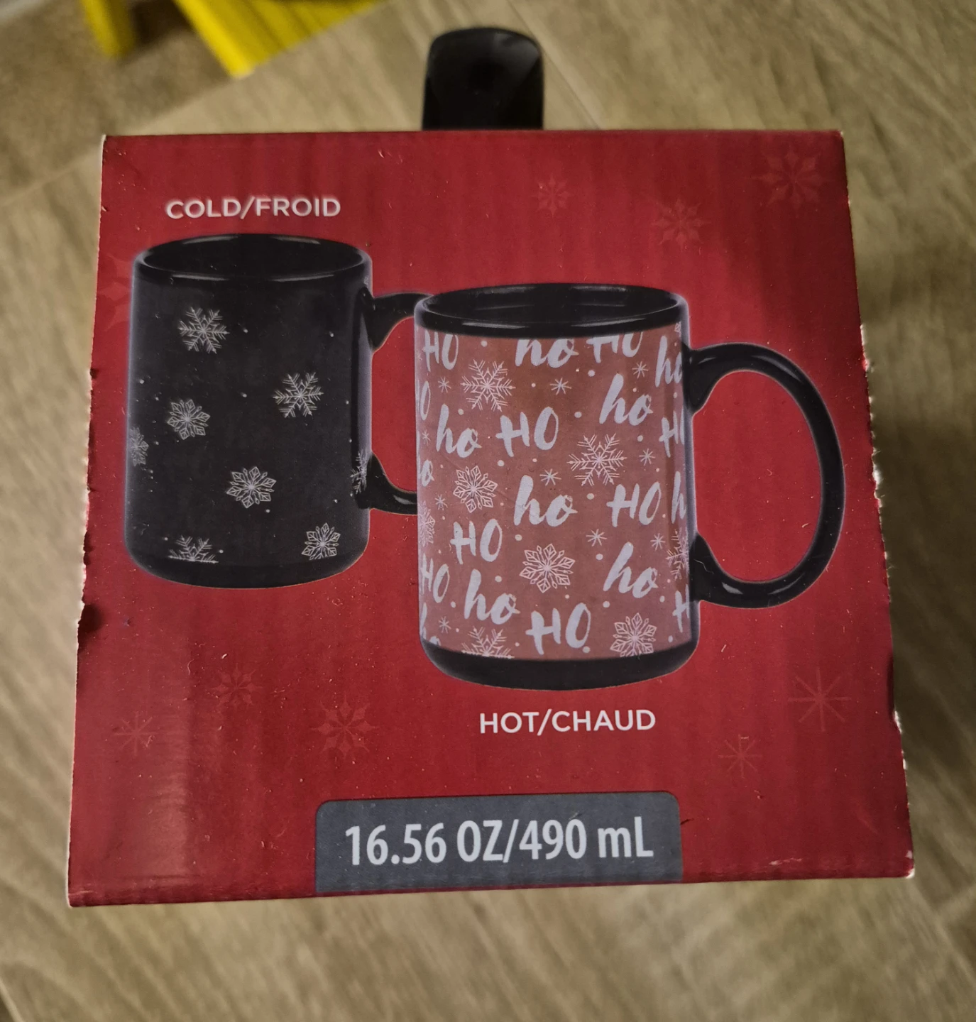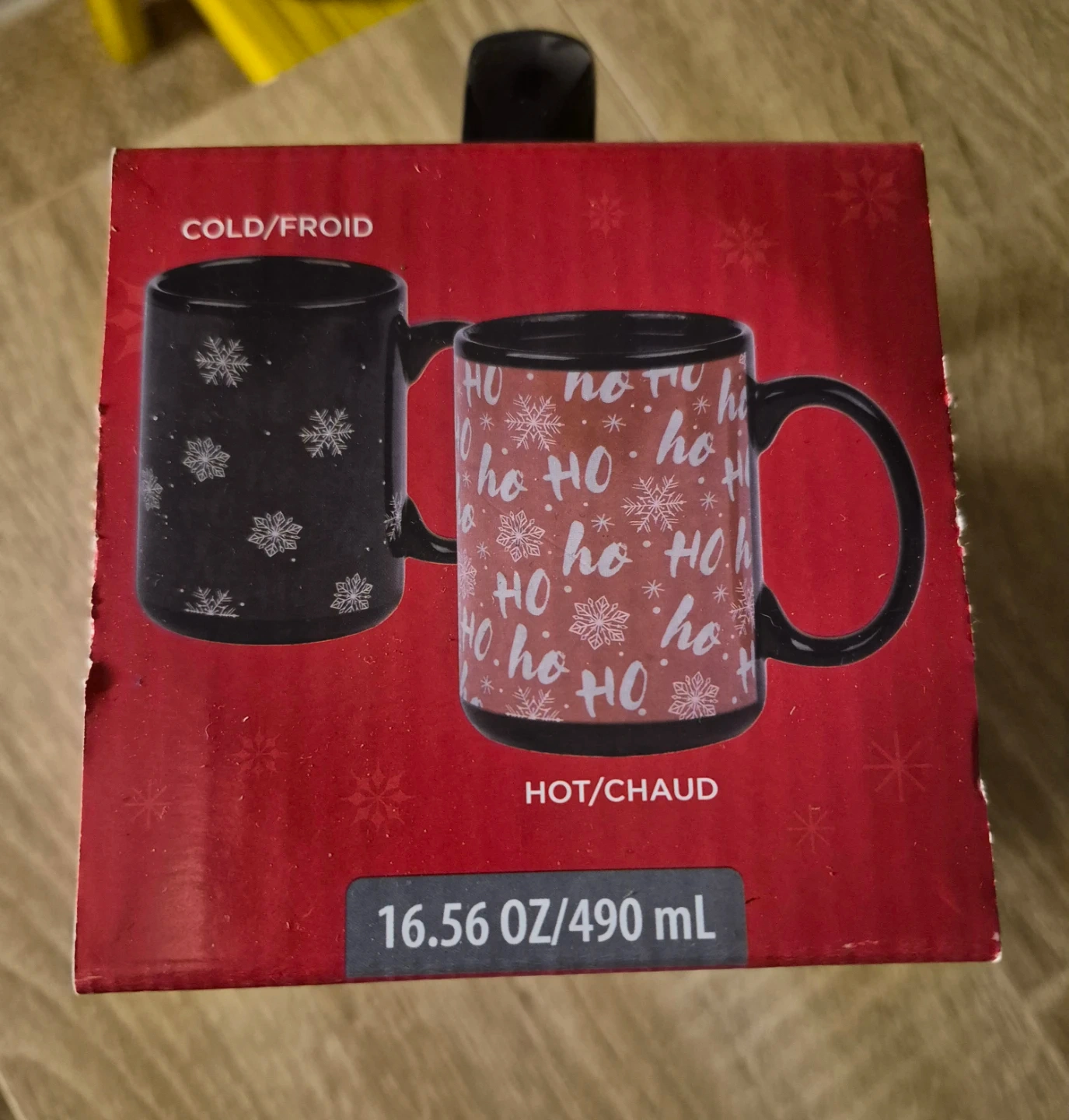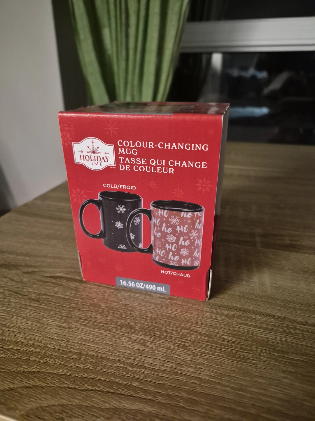 Selling a brand new Holiday Time colour-changing mug! The box shows the mug's design changes from cold to hot. It holds 16.56 oz / 490 mL and comes in its original box