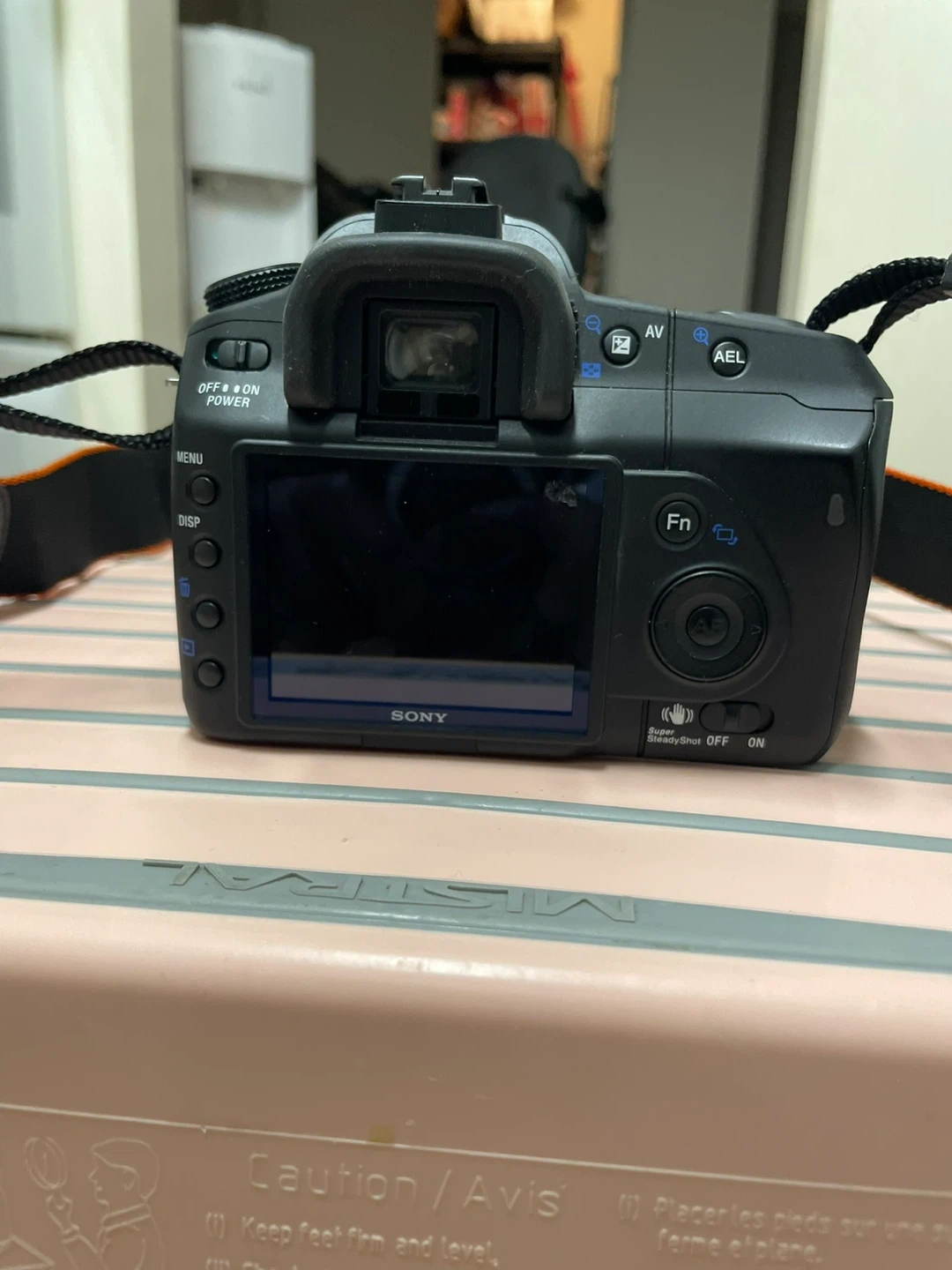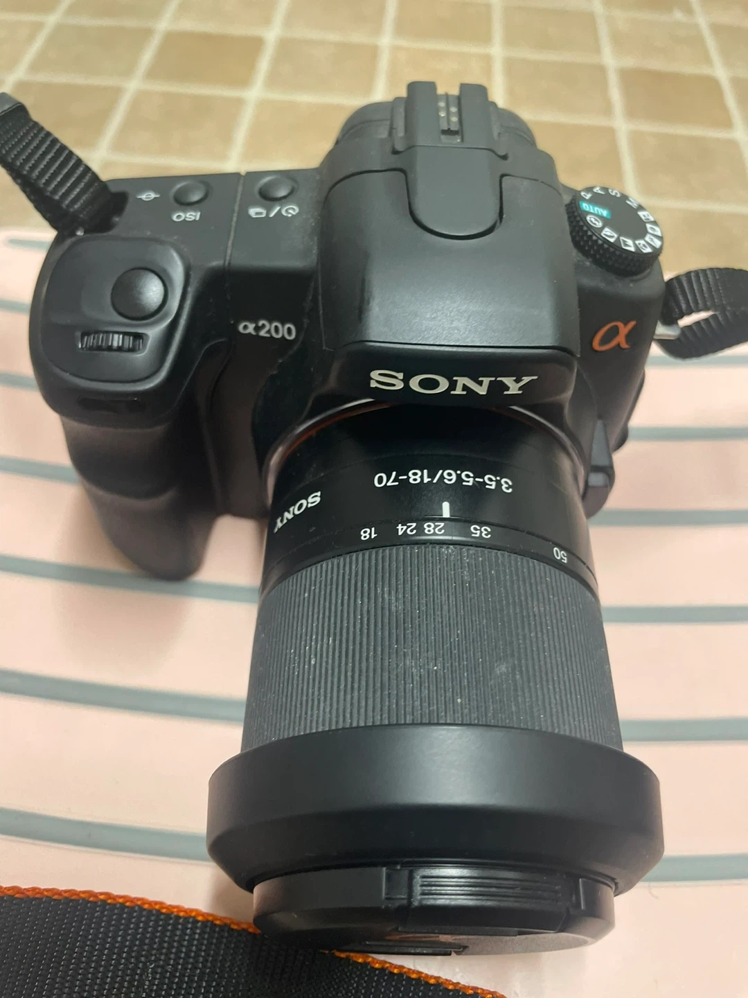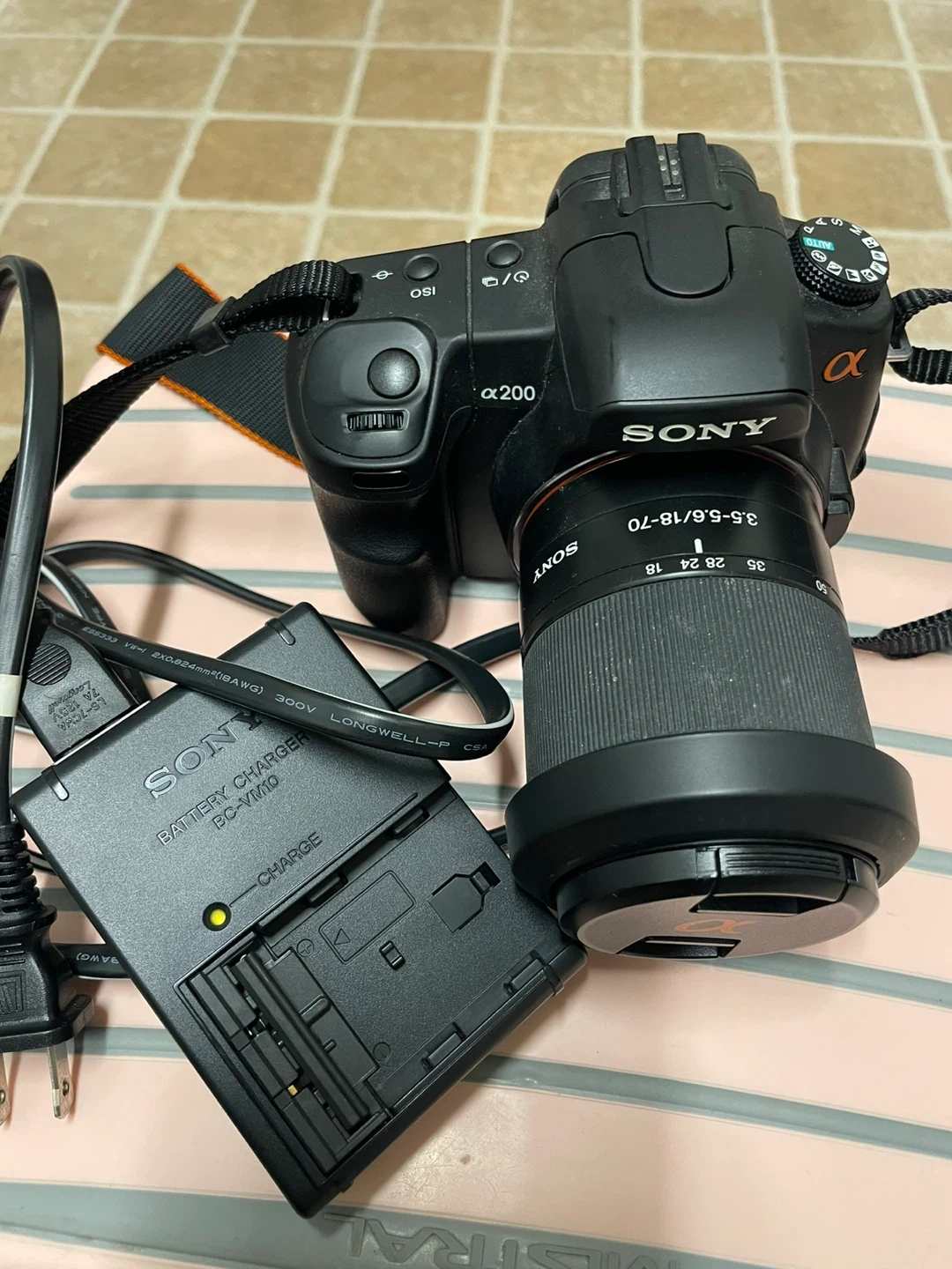 Selling a used Sony Alpha a200 digital SLR camera. It comes with a 3.5-5.6/18-70 lens and a battery charger. Also includes a camera bag for easy transport!