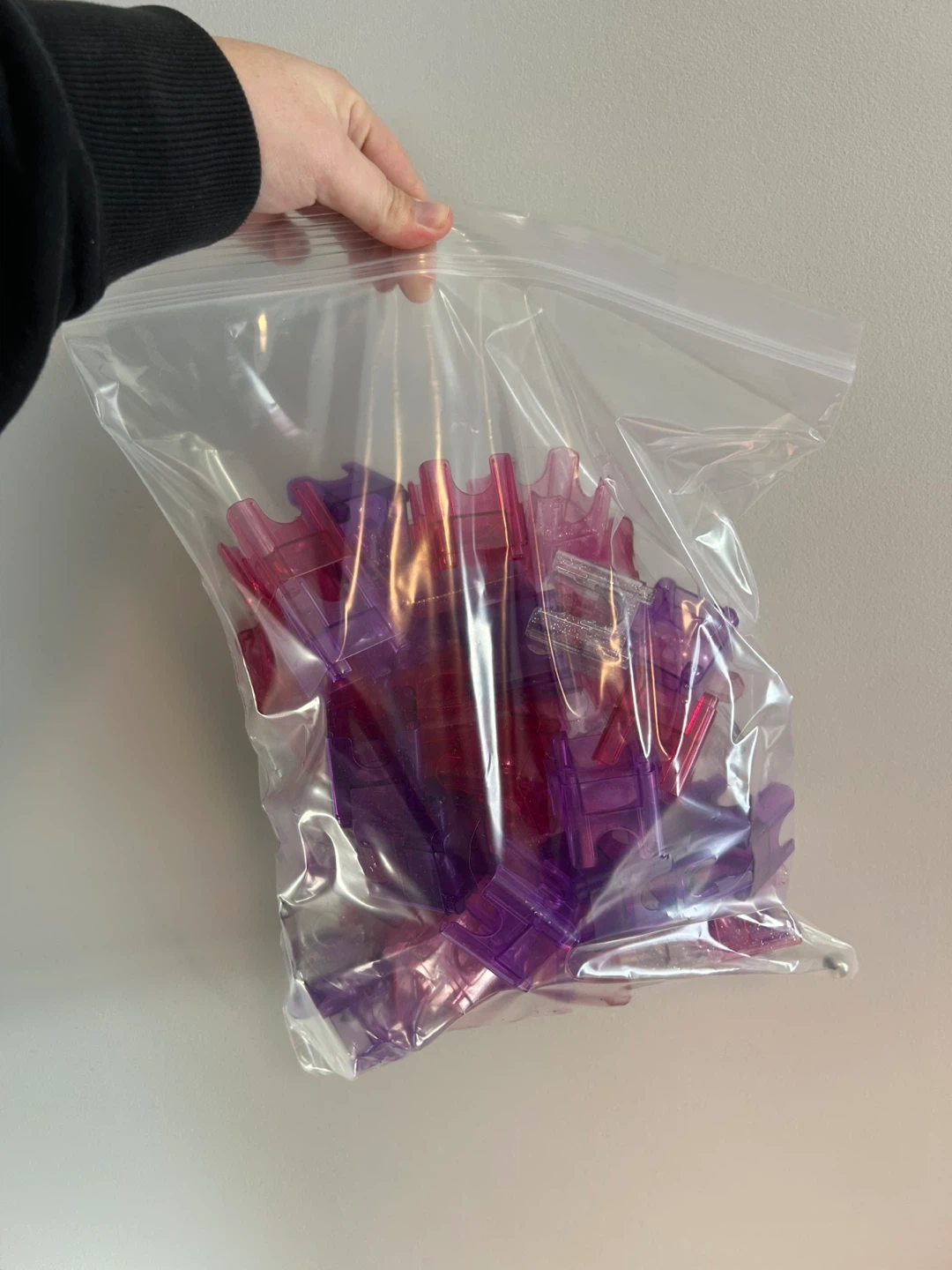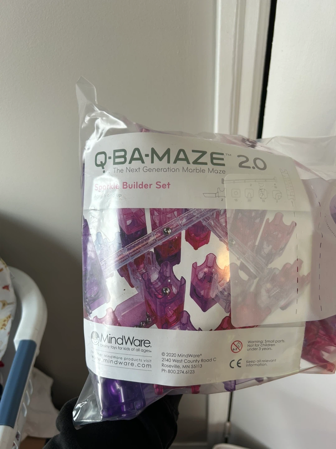 Q ba maze brand. Marble run. Pink, purple and silver glitter. Brand new condition but a few pieces missing, but still able to build a maze.