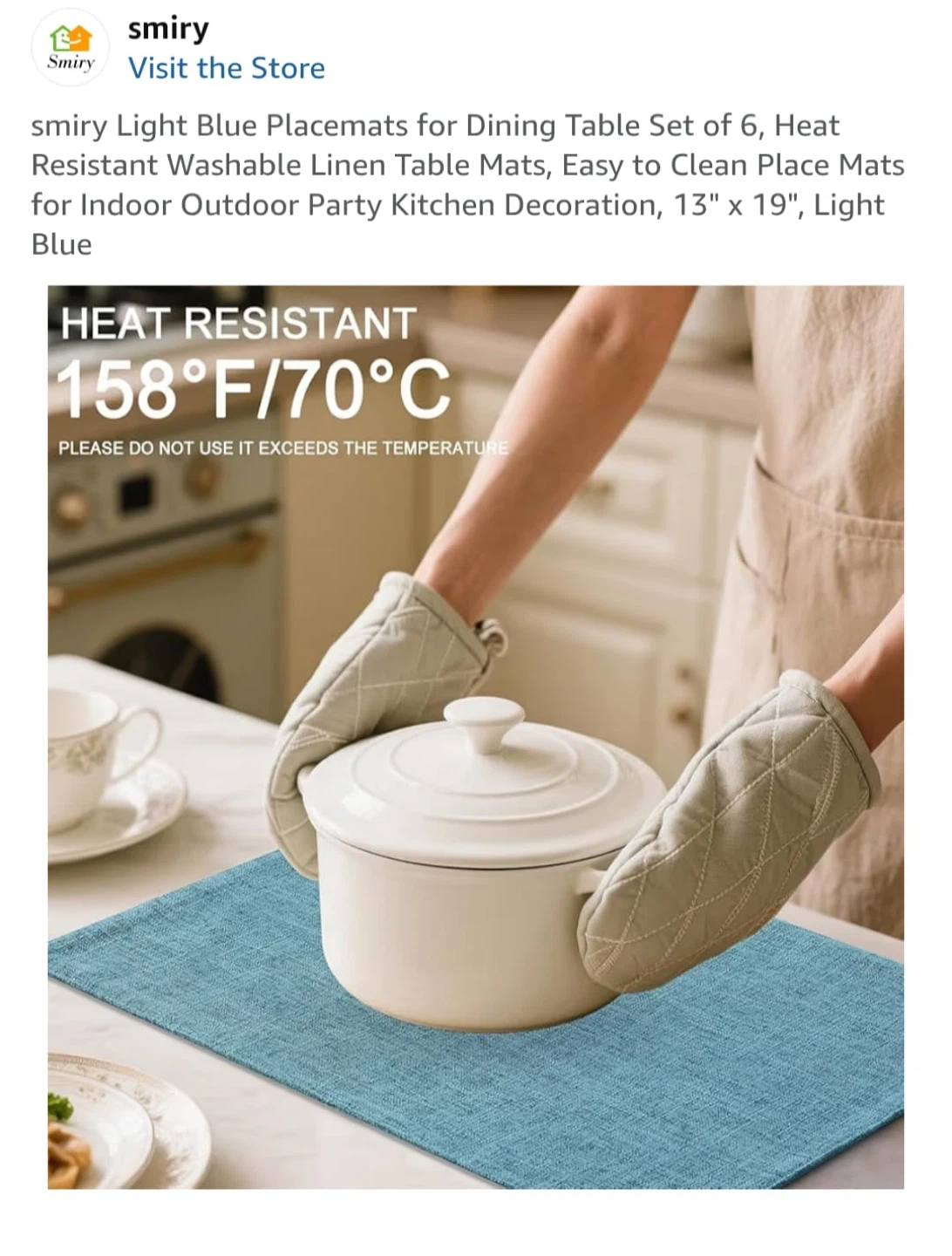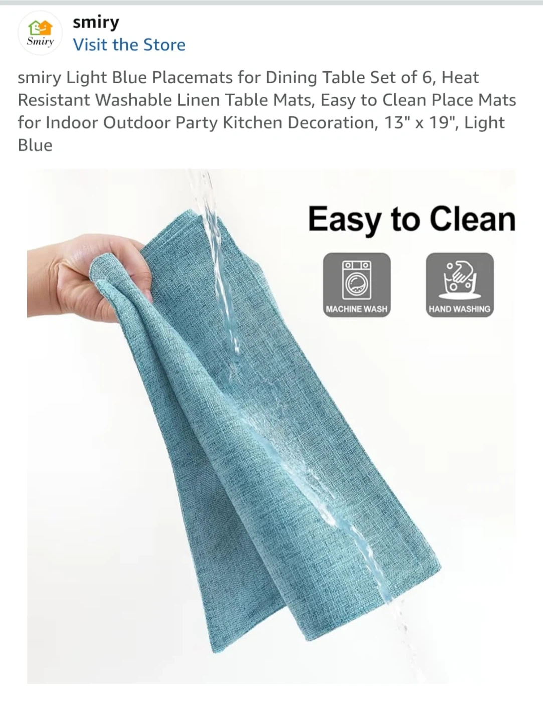 Smiry Light Blue Placemats 13" x 19" - 6 Pcs