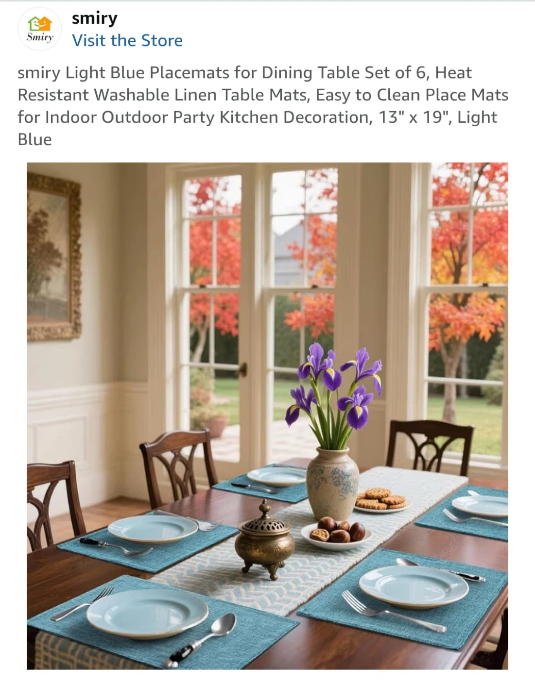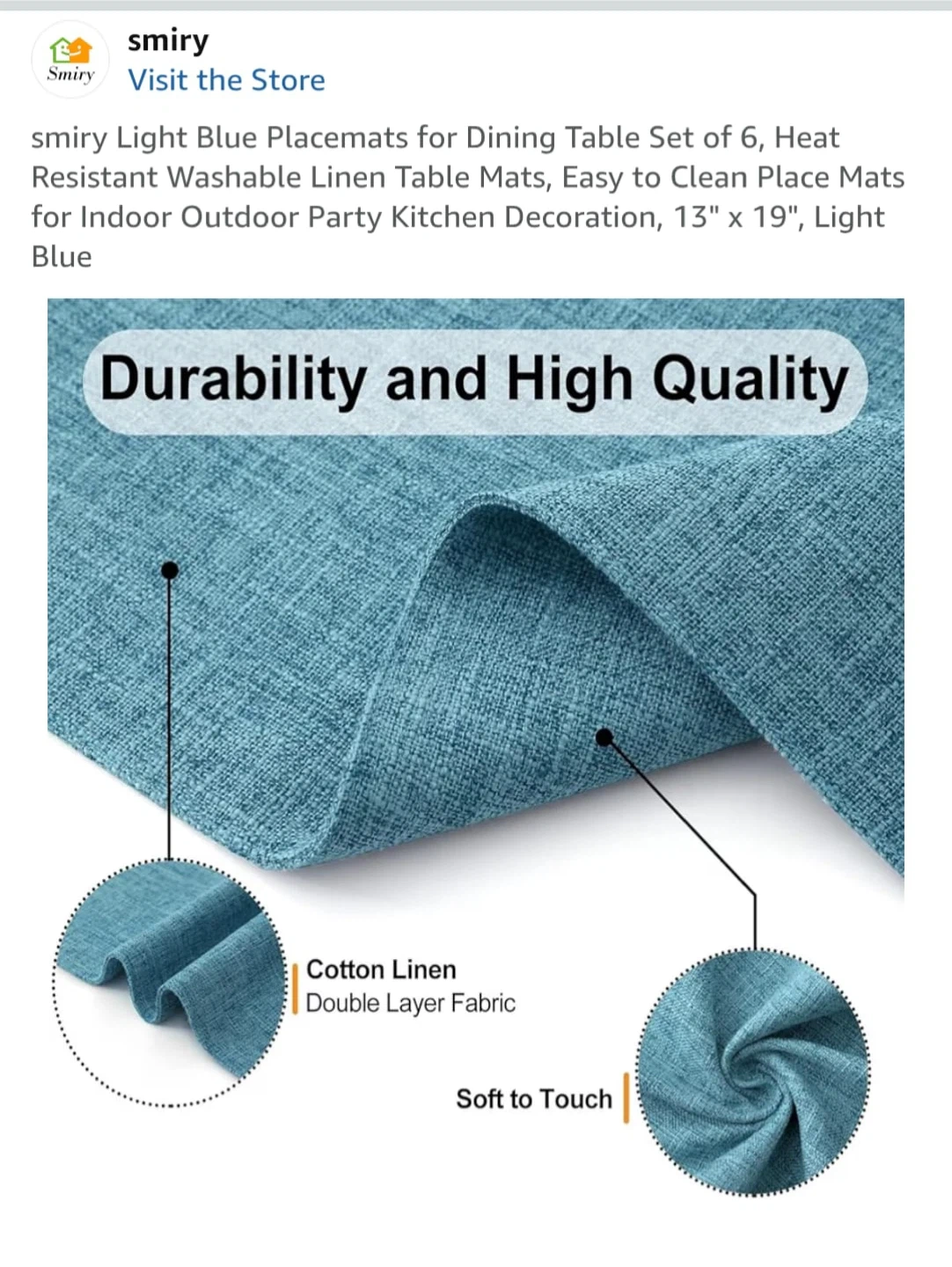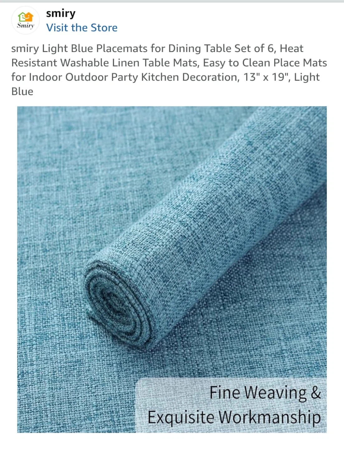 Smiry Light Blue Placemats 13" x 19" - 6 Pcs