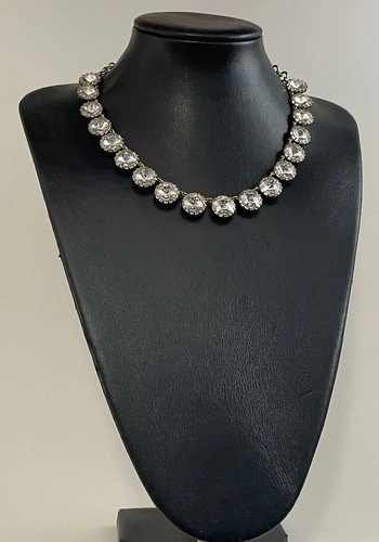 CLASSIC J. CREW GOLD TONE CLEAR RIVOLI RHINESTONE COLLAR NECKLACE IS 21 INCHES LONG AND WEIGHS 44 GRAMS. IN GOOD CONDITION.
