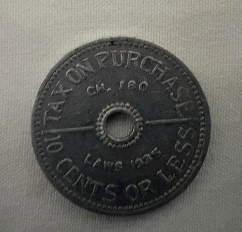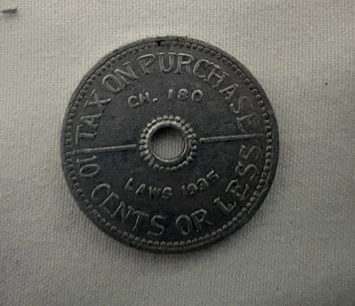 Delve into the past with this 1935 State of Washington TAX TOKEN, a tangible piece of history that reflects the era's taxation practices. The token is a circulated piece, bearing the message "Tax On Purchases 10 Cents Or Less." It's a curious collectible that offers a glimpse into the everyday life of the time period. As a exonumia enthusiast, this token fits perfectly within your collection of unique coins and paper money. Its historical value and composition make it an interesting find for numismatists and history buffs alike. Add this piece to your collection and own a small slice of the 1935 Washington Tax history.