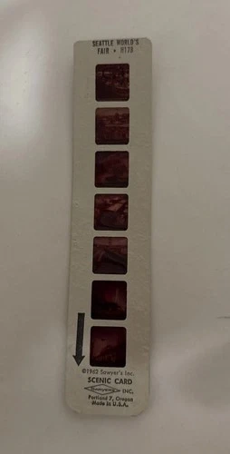 A brief description of the photos from top #1 to bottom # 7 include: 1) New arts and cultures in the Arab Republic Exhibit on International Plaza2) The Skyride in International Mall3 ) Space gothic arches tower - USA Science Pavilion4) Gayway 21 features Skyride, Space wheel and Space whirl 5) The Aluminum Monorail Train Ride with rubber tires on 3 x 5 concrete rail6) The 600 ft high Space Needle towers over Friendship Mall7) Visitors travel via monorail 1.2 miles in 95 seconds There are descriptions of each slide at bottom of each photo. Feel free to message if you have any questions!