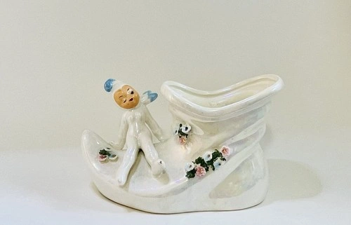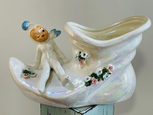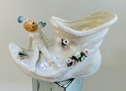 Delightful Vintage hand painted Elf Planter Pixie On A Slipper Vase - mid century delight! Charming and in great condition. No chips or cracks. Please see photos to be certain you are satisfied with condition. Thank you.