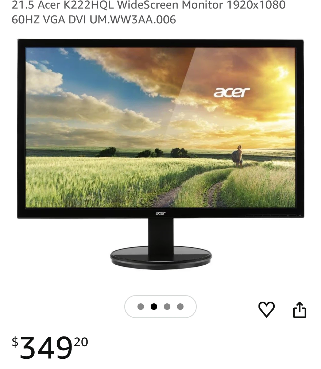 1 / 41 / 4Buy & SellAcer LCD MonitorAcer LCD Monitor$42Selling an Acer SB220Q LCD Monitor. The model version is SB220Q bi. Power Rating is 19V== 1.3A. Part Number is UM.WSOAA.003.BrandAcerWHERE TO MEETCheck LocationView MapSELLERverifiedSunnyGarden District88690 reviews1 chats·0 favorites·34 viewsSEND CHAT TO SELLERHi Sunny! I’m interested in your listing.Hi Sunny! I’m interested in your listing.Get the Karrot app to chatSign In to chat