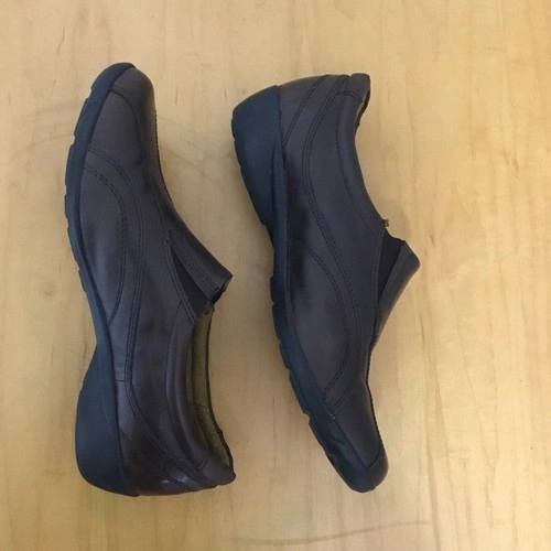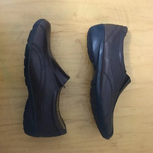 Crafted with a dark brown leather upper, these shoes feature a sleek, slip-on design that makes them easy to wear and versatile enough to pair with various outfits.