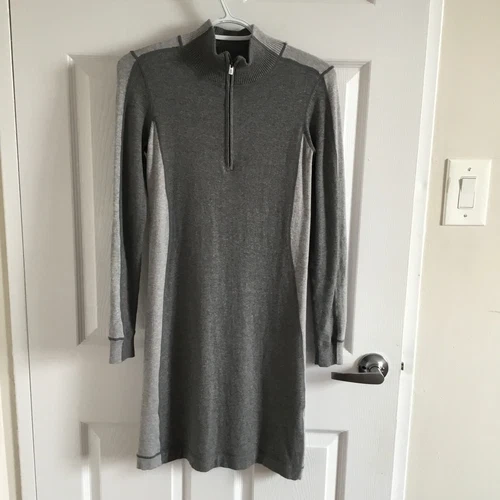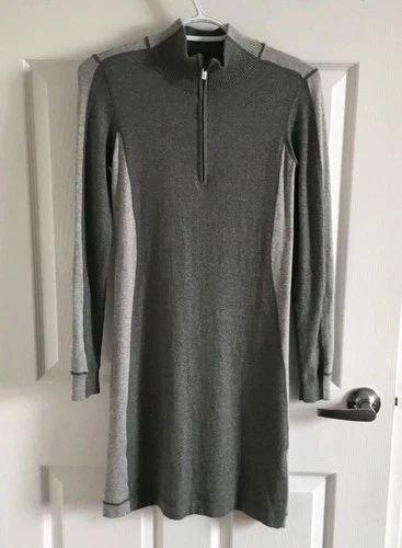 Tommy Bahama 1/4 zip grey sweater dress Midi Round Neck Colorblock size XXS