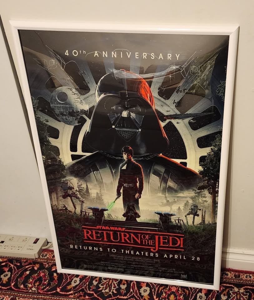 Selling a framed Star Wars: Return of the Jedi 40th Anniversary poster! It's in great condition and ready to hang up in your home theatre or any Star Wars fan's room