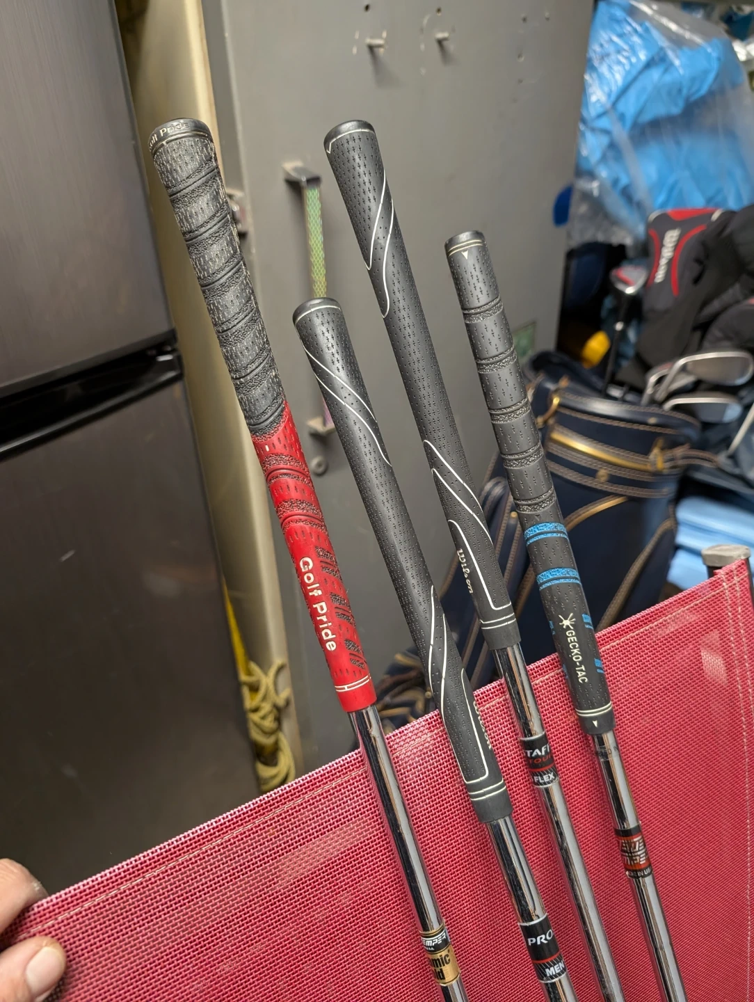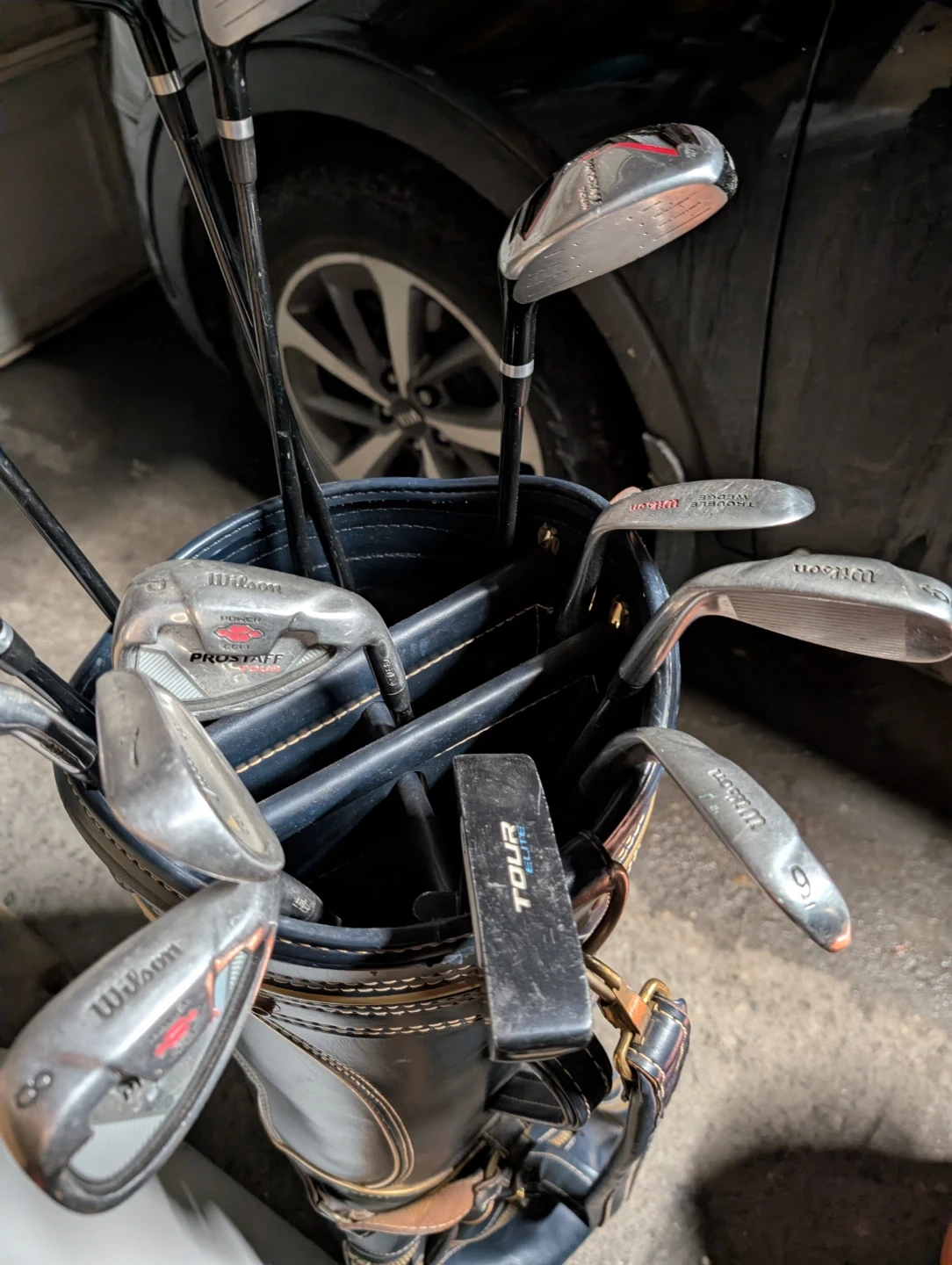 Selling a set of golf clubs, including Wilson and Titleist irons, and Prostaff woods. They come with a TPC (Tournament Players Championship) golf bag. Great for anyone looking to upgrade their golf gear!