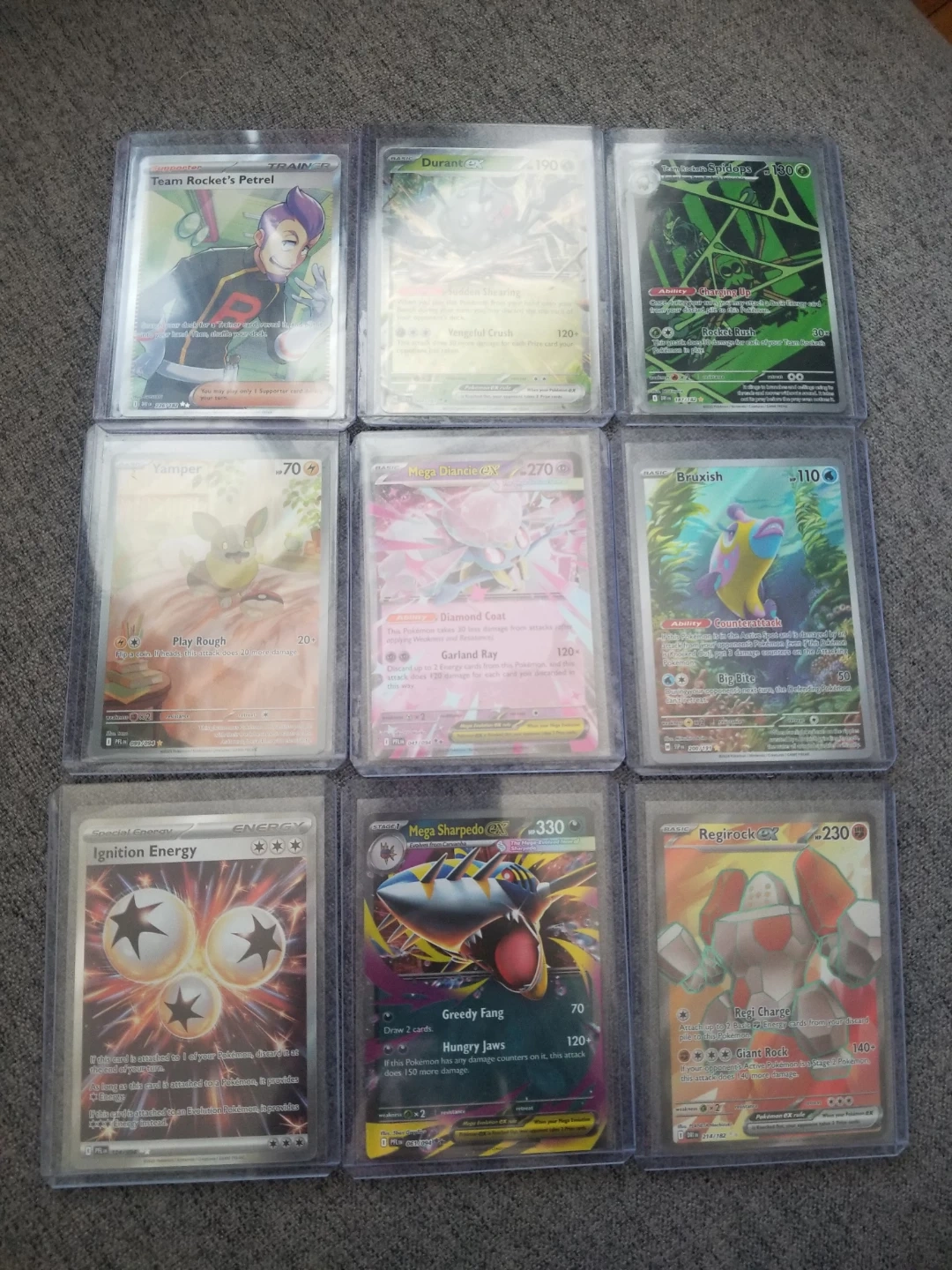 Selling a lot of Pokemon cards, including Durant Ex, Mega Diancie Ex, Bruxish, Regirock, and more! Check out the photos for details!