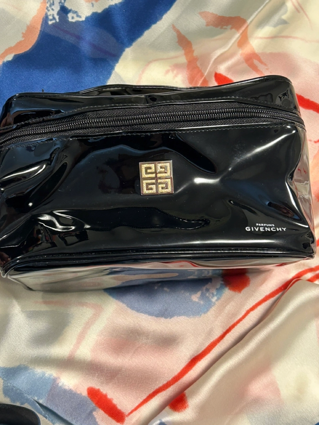 Selling a black cosmetic pouch from Givenchy. It's in great condition and perfect for storing your makeup or toiletries. The pouch features the Givenchy logo. It's a stylish and practical accessory! I invite you to view my other items; If you are interested in any of them, I will give you a better price.