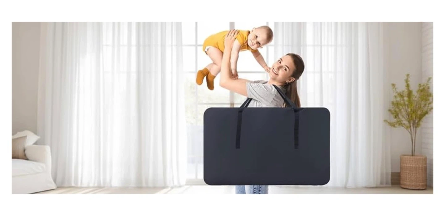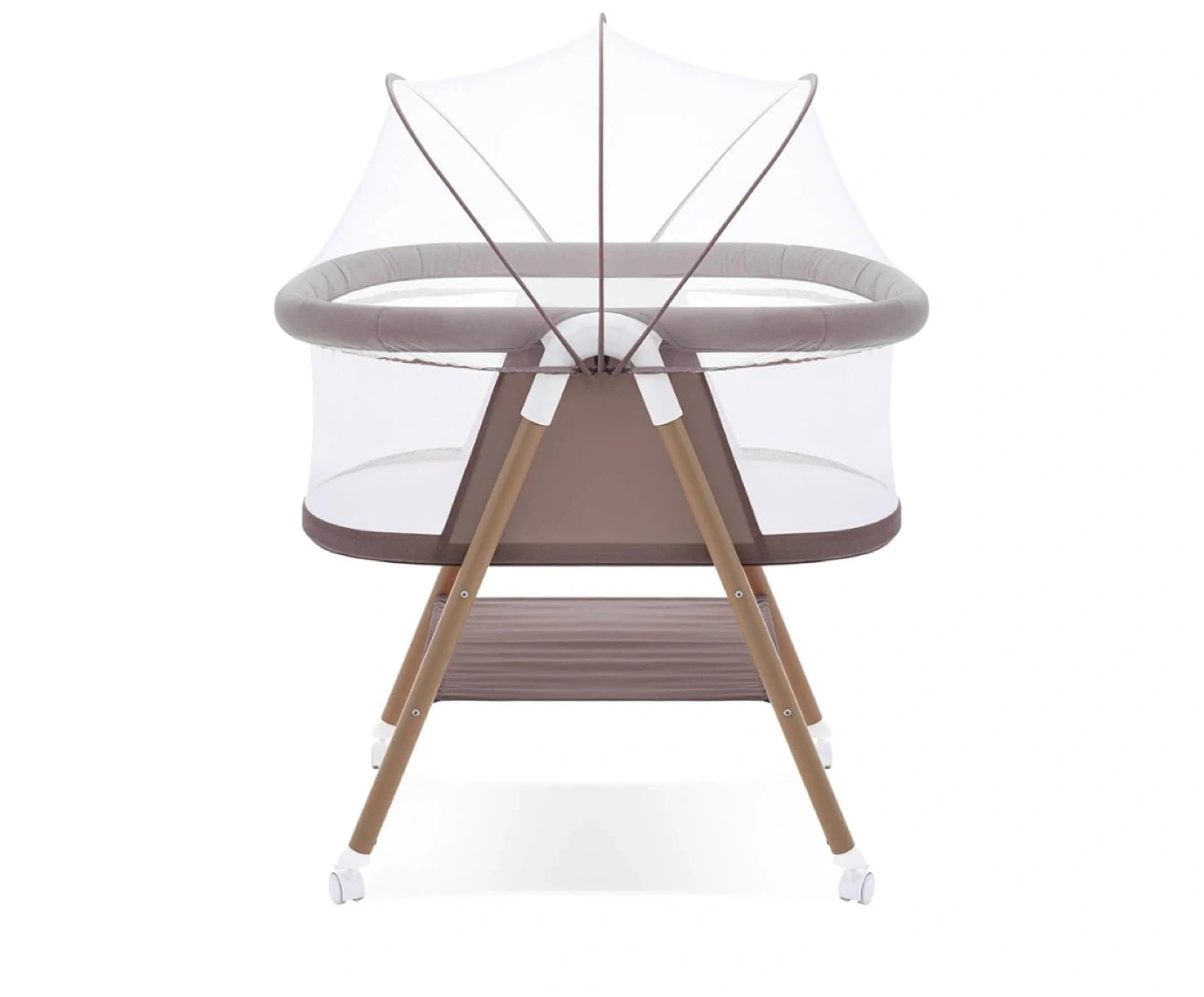 This baby bassinet is designed for convenience. It features a breathable mesh and a mosquito net for baby's comfort and safety. It also comes with a travel bag for easy transport.