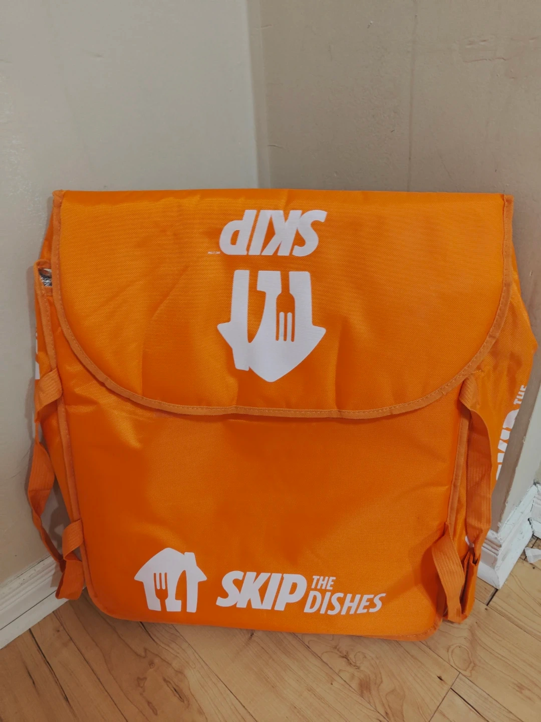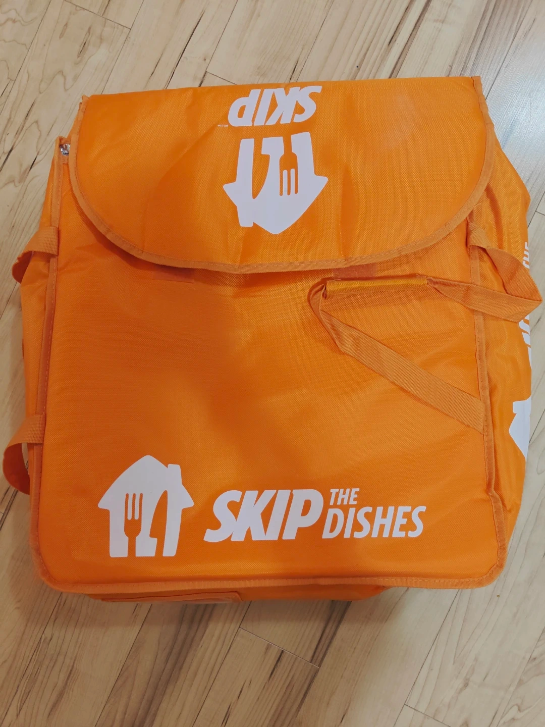 Orange SkipTheDishes insulated delivery bag. Keep food warm or cold during transit. It's great for food delivery drivers!