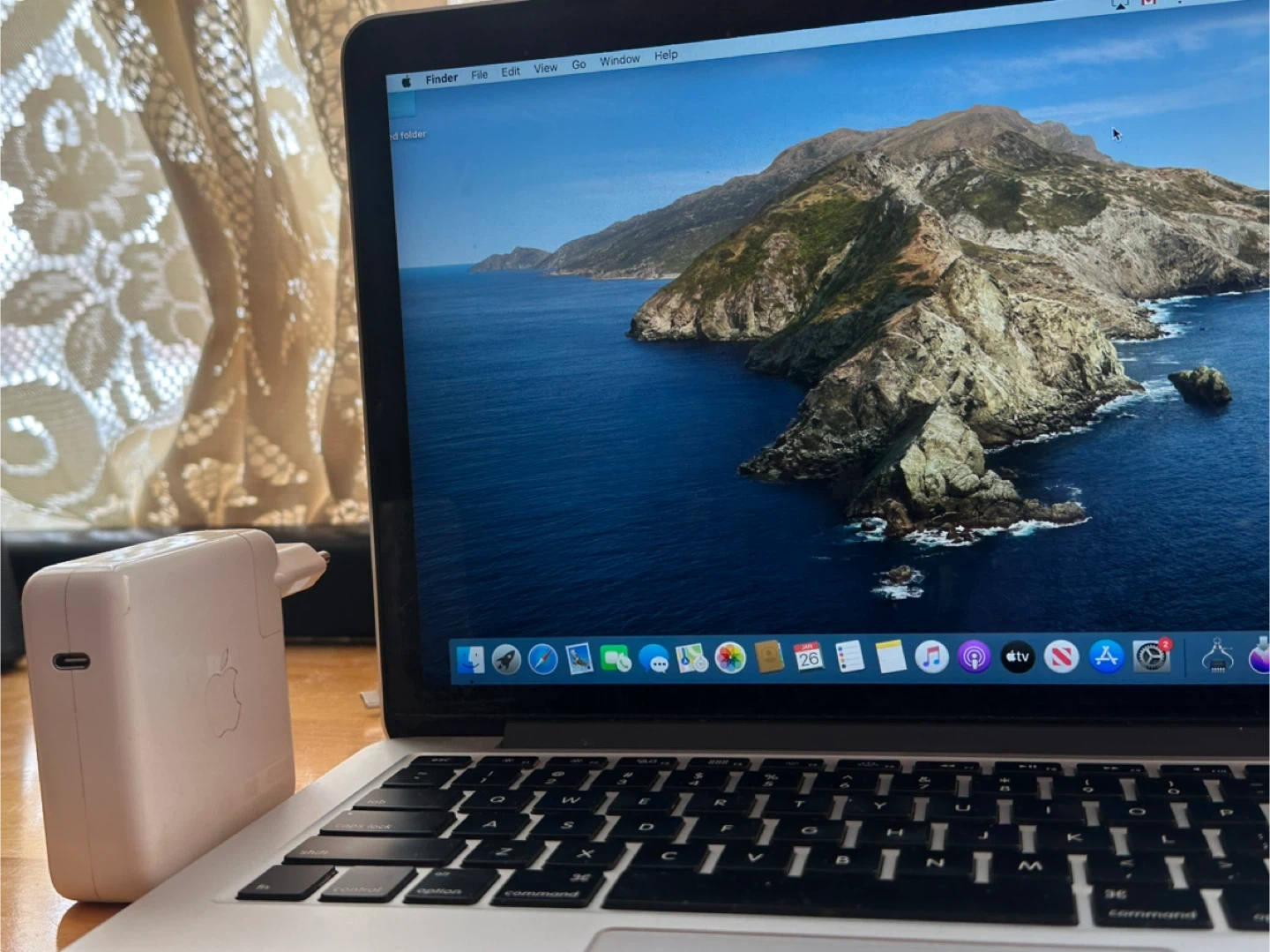 MacBook Pro (Retina, 13-inch, Early 2015) with a 2.7 GHz Dual-Core Intel Core i5 processor. It has 8 GB of 1867 MHz DDR3 memory and a 128 GB SSD. Runs macOS Catalina. Come with charger and cable.