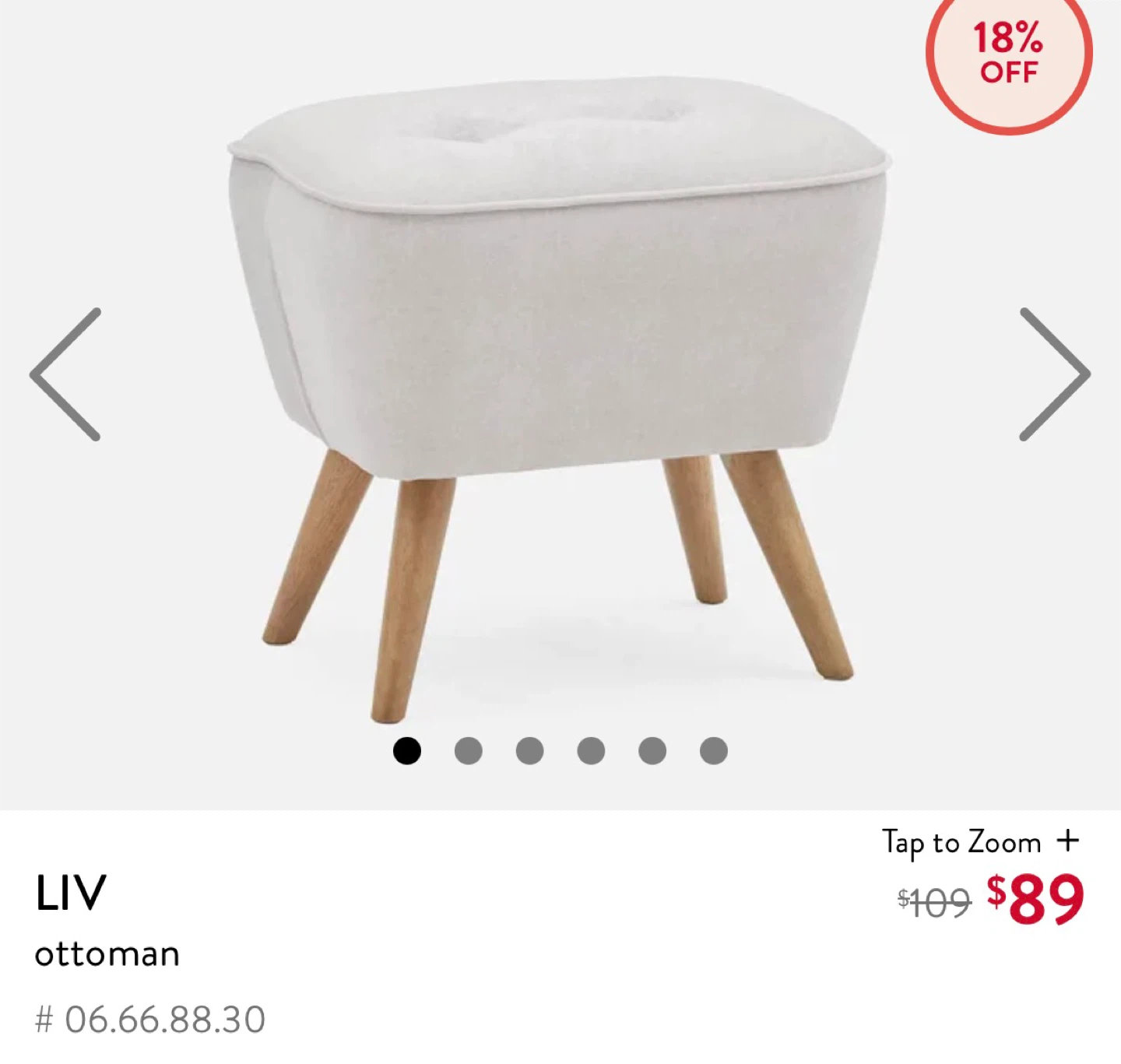 Buy & SellLIV OttomanLIV Ottoman$60This is a LIV ottoman with a light grey fabric finish and wooden legs. It's tufted on top and has a compact design. I’m mint condition.ConditionLike newWHERE TO MEETBritannia Road & Tremaine RoadView MapSELLERHassanWalker100 reviews0 chats·0 favorites·10 viewsSEND CHAT TO SELLERHi Hassan! I’m interested in your listing.Hi Hassan! I’m interested in your listing.Get the Karrot app to chatSign In to chat