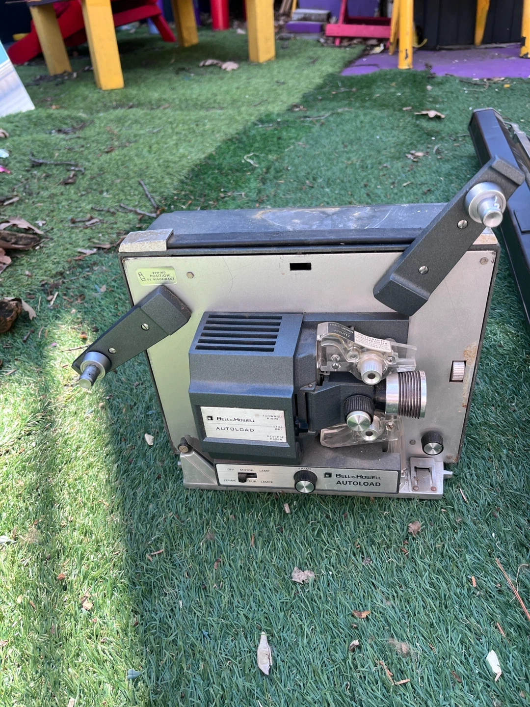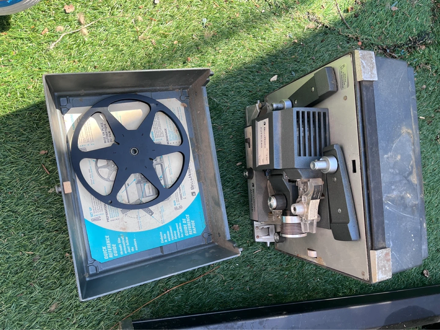 Bell & Howell Autoload 8mm film projector. It comes with a reel and a quick reference guide. This projector is great for viewing old home movies!