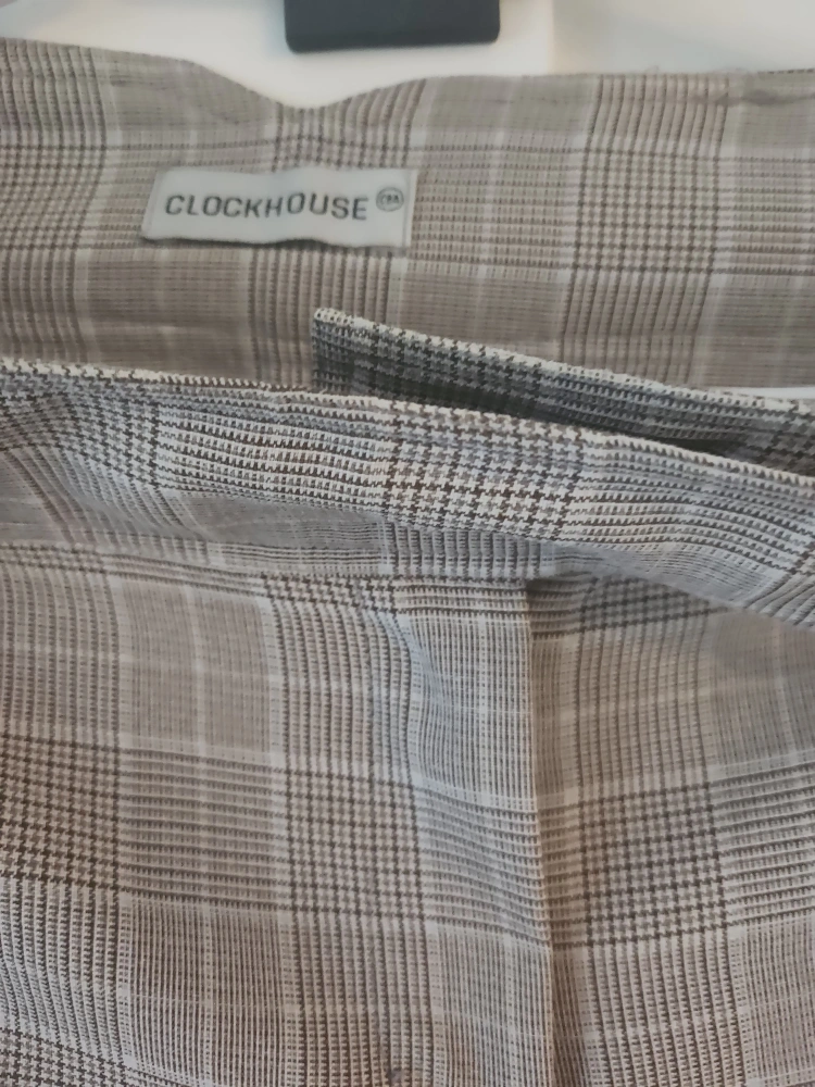 Selling a pair of Clockhouse trousers in a stylish plaid pattern. They are a size 34 and in great condition! Perfect for adding a touch of sophistication to your wardrobe.