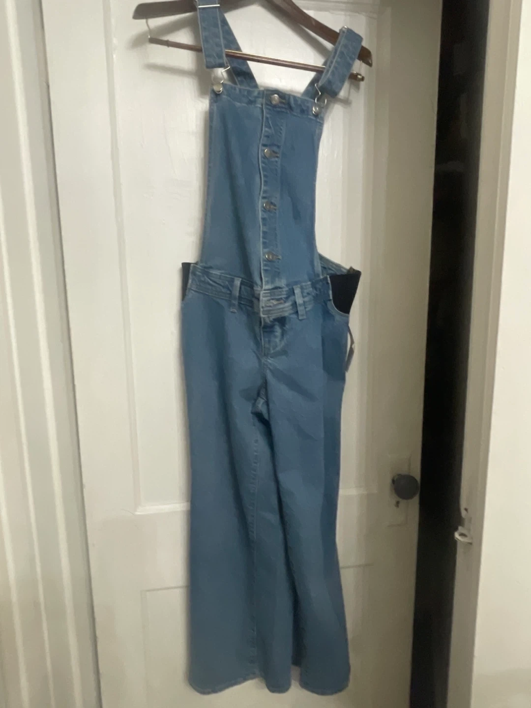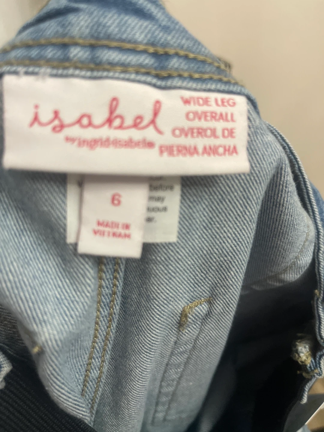 These Isabel by Ingrid & Isabel wide leg overalls are a size 6. They're made of denim and designed for maternity wear. The original price was $38.00.