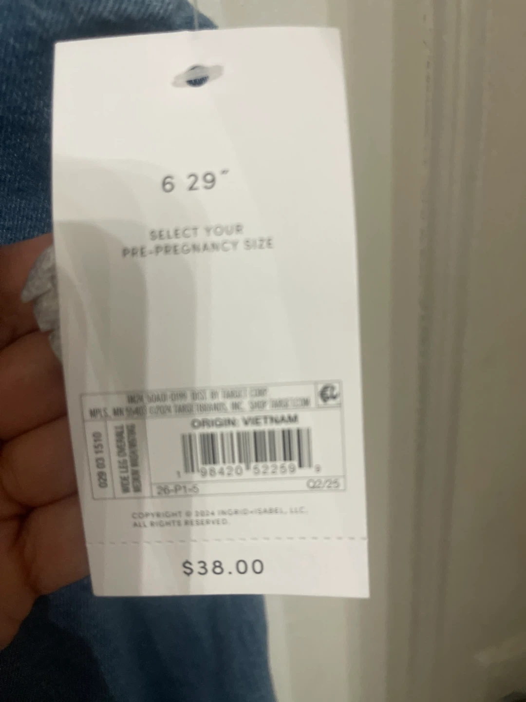 These Isabel by Ingrid & Isabel wide leg overalls are a size 6. They're made of denim and designed for maternity wear. The original price was $38.00.