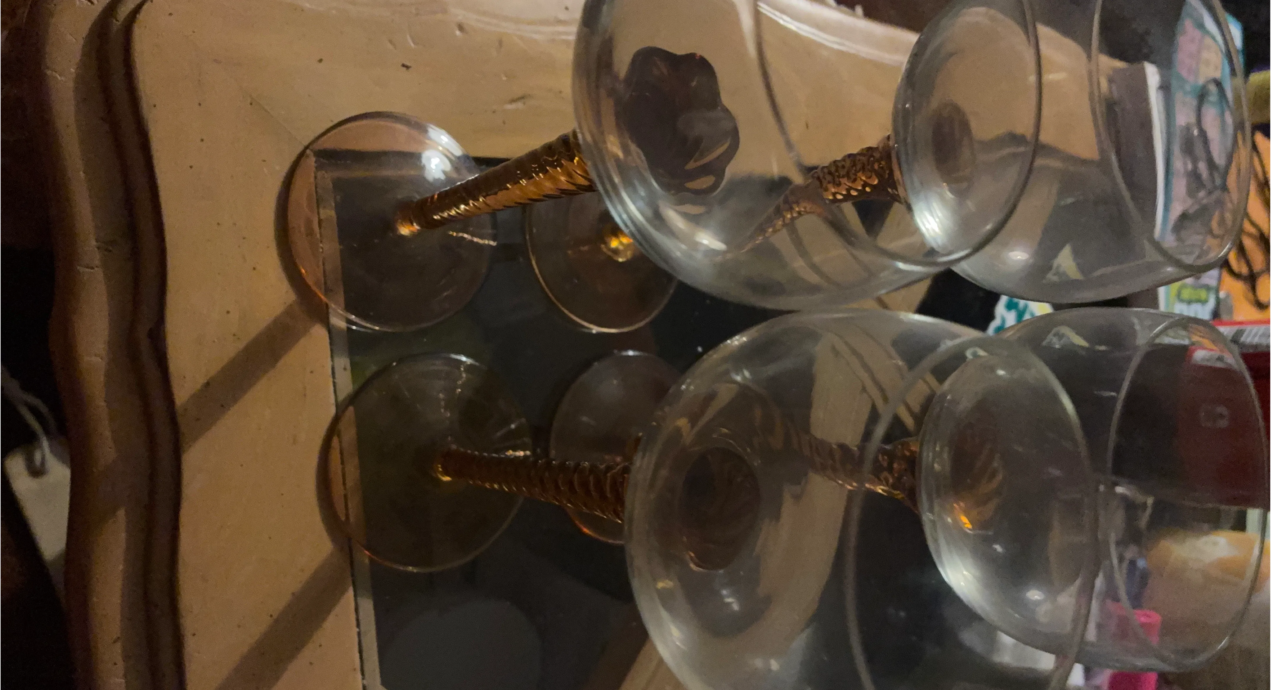 Set of 4 Amber Stem Wine Glasses