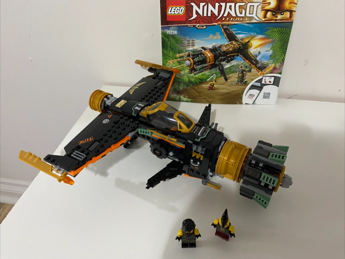 Ninjago Legacy jet features black and gold accents. Includes two minifigures. The set also includes the instructions. Building this LEGO set would be a great way to unwind after a long day.